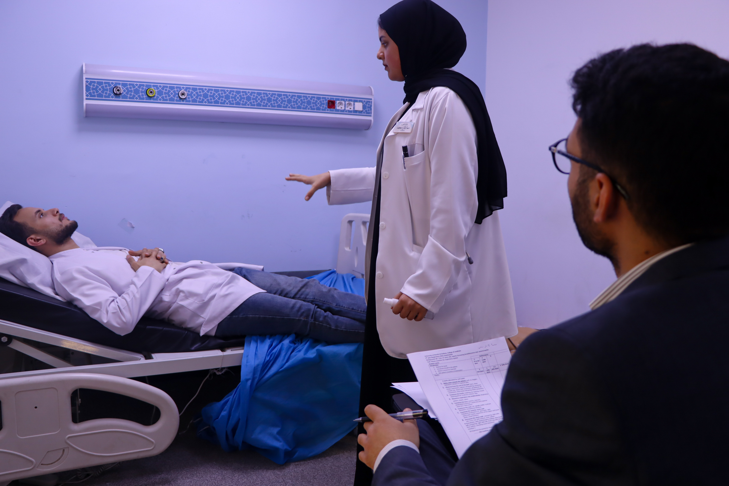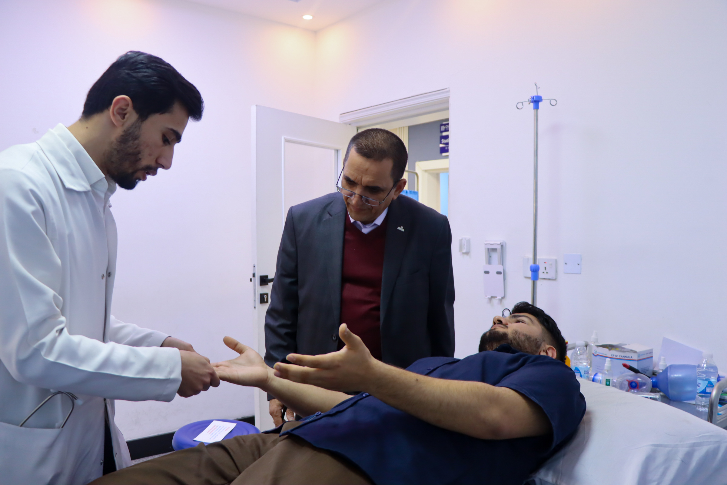 وشمل ذلك امتحان مادة الباطنية، الذي يُعد من الركائز الأساسية في التدريب السريري، حيث ركّز على تقييم مهارات الطلبة في أخذ التاريخ المرضي، وإجراء الفحص السريري الدقيق، وتحليل الحالات المرضية، ووضع الخطط العلاجية المناسبة وفق المعايير الطبية الحديث