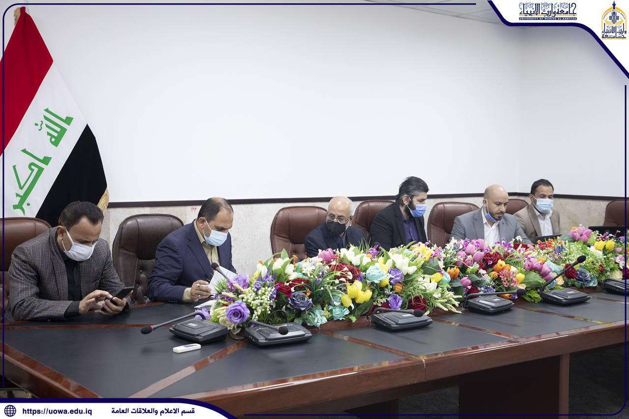 ضمن المتابعة المستمرة لجامعة وارث الانبياء (عليه السلام) في سير المحاضرات الالكترونية وضمان حصول الطلبة الاعزاء على افضل الخدمات في التعليم الالكتروني اطلعت اللجنة المركزية في رئاسة الجامعة وبحضور السيد عميد كلية الهندسة المحترم على سير المحاضرات الالكترونية في كلية الهندسة المتمثلة بجميع اقسامها (قسم هندسة الطب الحياتي ، قسم الهندسة المدنية، قسم هندسة تقنيات التكييف والتبريد) وتم مداولة العديد من الامور الهامه التي من شانها دعم وتشجيع الطلبة الاعزاء في استخدامهم لنظام التعليم الالكتروني والاستفادة القصوى من العملية التعليمية ، وجاءت هذه الزيارة ضمن سلسلة من الزيارات المستمرة على جميع كليات واقسام الجامعة.