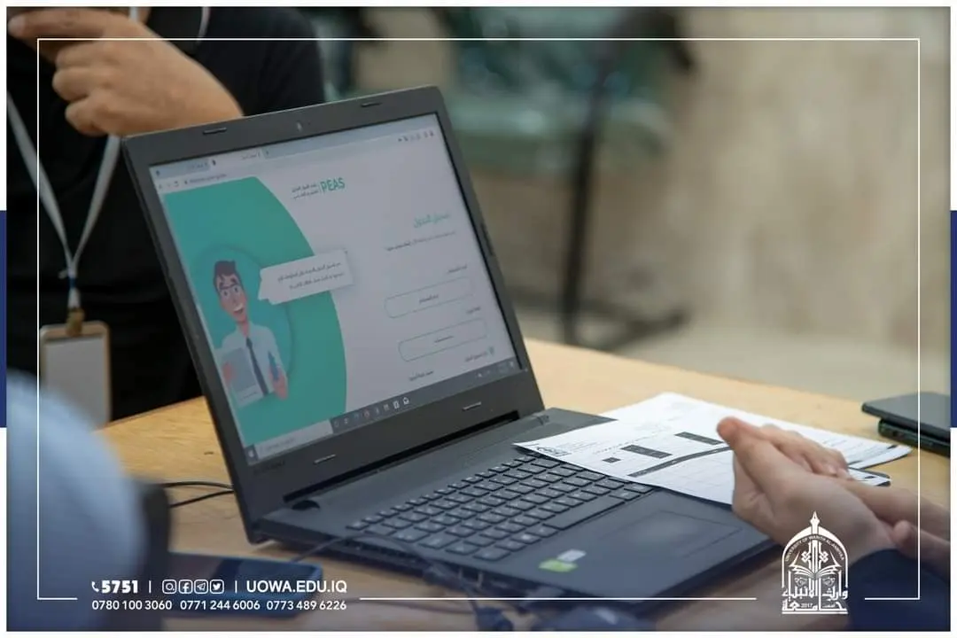 جانب من استقبال فريق التسجيل في جامعة وارث الانبياء(عليه السلام) للطلبة الاعزاء واولياء امورهم الكرام للاجابة عن استفساراتهم ومساعدتهم في انجاز اولى خطوات التقديم ،وهي انشاء حساب الطالب وملء البيانات وتفعيل القنوات الخاصة.