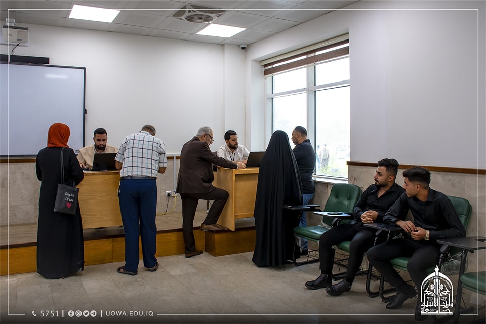 جانب من استقبال فريق التسجيل في جامعة وارث الانبياء(عليه السلام) للطلبة الاعزاء واولياء امورهم الكرام للاجابة عن استفساراتهم ومساعدتهم في انجاز خطوات التقديم.