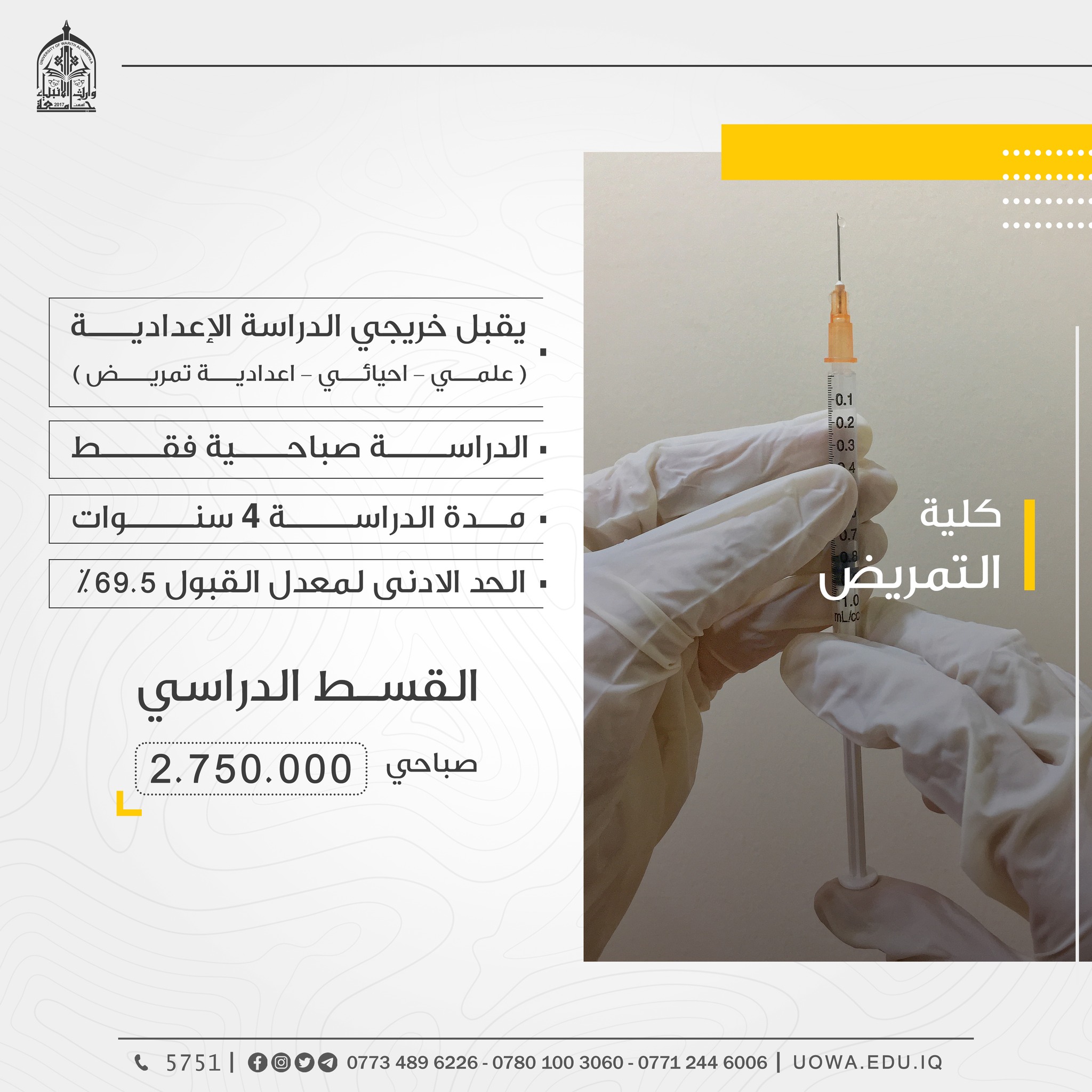 *علما ان فريق التسجيل متواجد طيلة ايام الاسبوع(عدا يوم الجمعة) من الساعة ٨صباحاً ولغاية ٥مساء لاستقيالكم ومساعدتكم في اتمام عملية التقديم.