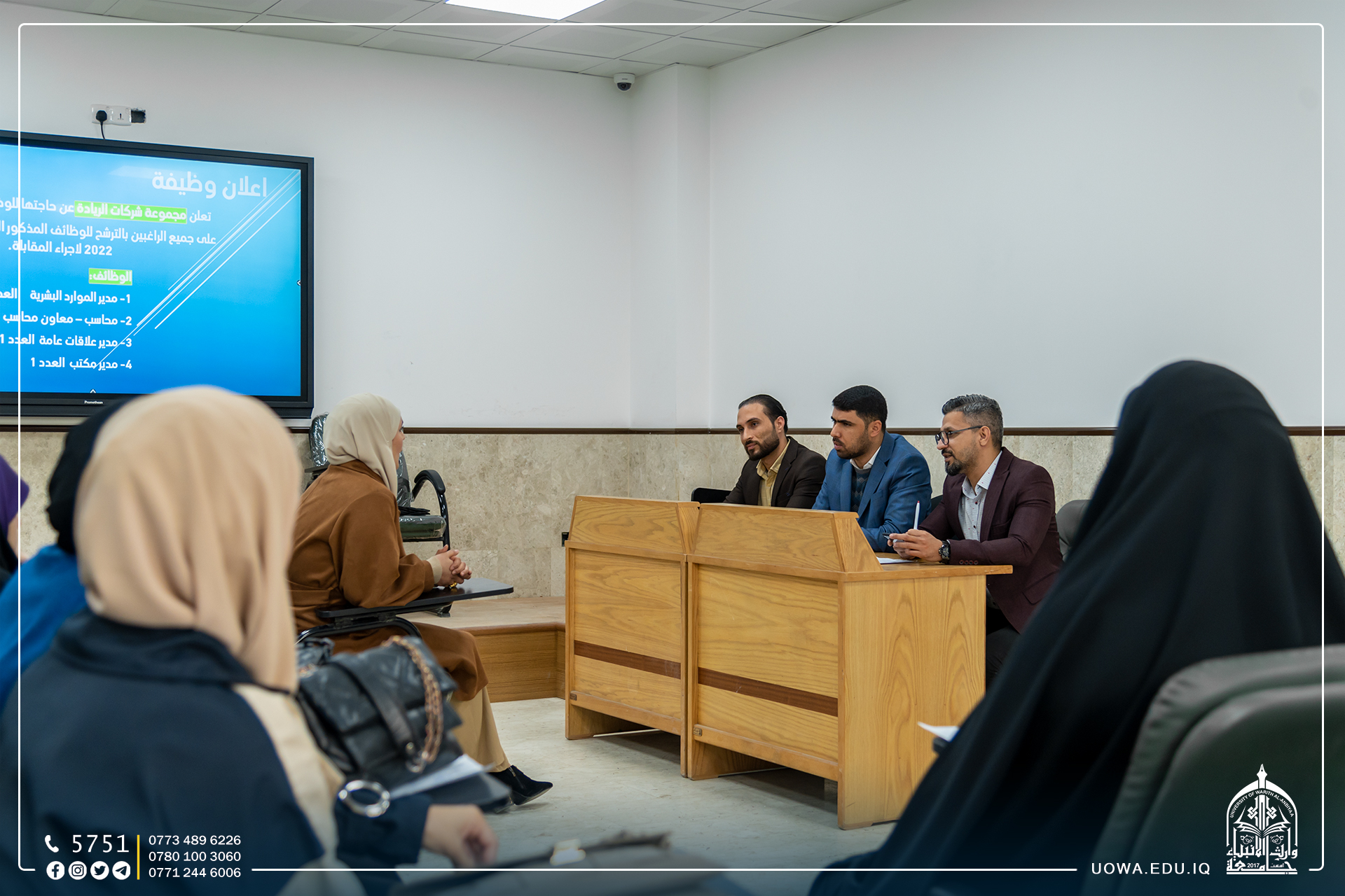 بالصور.. ورشة تدريبية لطلبة كلية الادارة والاقتصاد/ قسم المحاسبة حول كيفية اجراء مقابلات العمل، وما هي أهم نقاط الاستعداد لها، من حيث نوع الاسئلة وطرق الاجابة، فضلاً عن معرفة الامور الواجب تجنبها أثناء اجراء المقابلة.