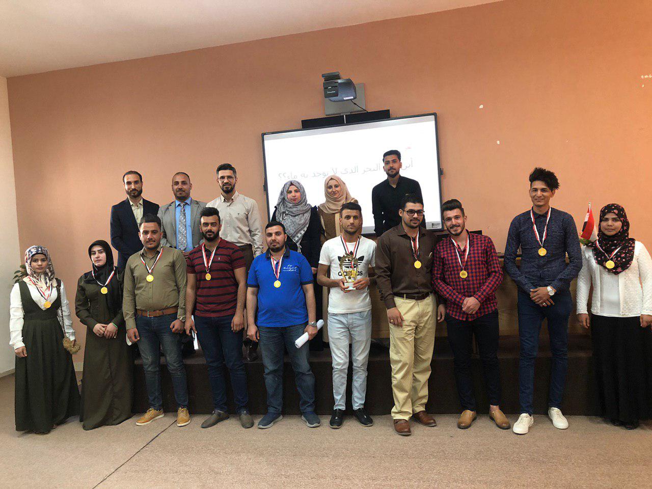ضمن النشاطات اللاصفية لطلبة كلية الادارة والاقتصاد اقيمت الجولة النهائية للمسابقة علمية بين قسم ادارة الاعمال - مرحلة اولى وقسم المحاسبة - مرحلة اولى شعبة a  وقد فاز في المسابقة فريق المحاسبة -مرحلة اولى  شعبة A وقد تم تكريمهم  من قبل اللجنة المنظمة  مبارك الفوز للفريق الفائز
