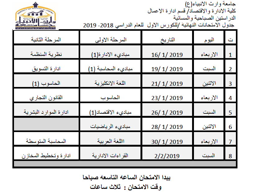 قامة عمادة الكلية ومجلسها الممثل بالاستاذ الدكتور عامر العطوي ود.نضال المالكي ود.فهد الشمري بتكريم الطلبة الاوائل للدراسة الصباحية والمسائية للمرحلتين الاولى والثانية وللقسمين المحاسبة وادارة اعمال في يوم الاحد 3/3/2019 وكذلك تم تكريم افضل طالبة محتشمة لكل قسم وقد حضر مجموعة من السادة التدريسيين والطلبة حفل التكريم