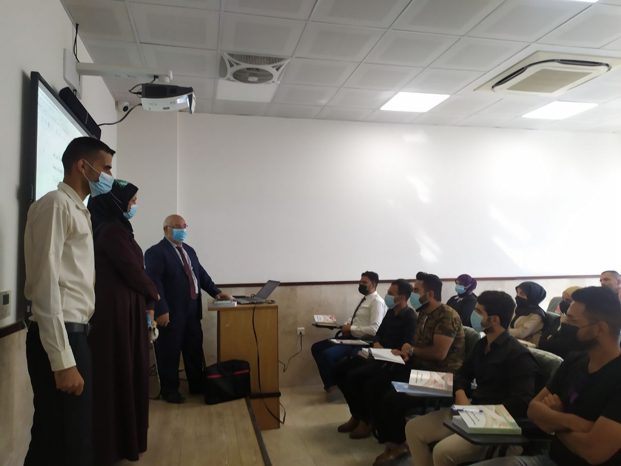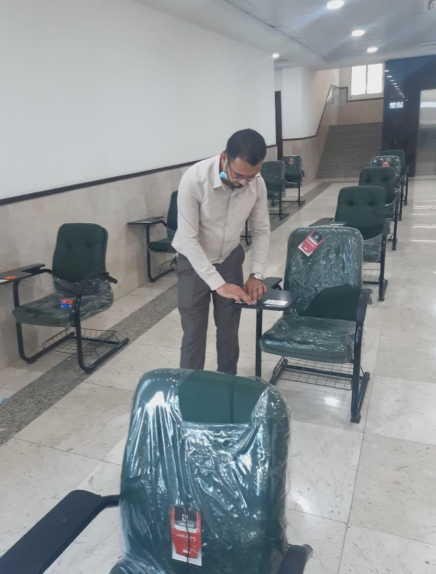 الإستعداد لتجهيز قاعات كلية الادارة والاقتصاد في قسم المحاسبة للامتحانات الحضوريه للكورس الثاني ٢٠٢٠-٢٠٢١
