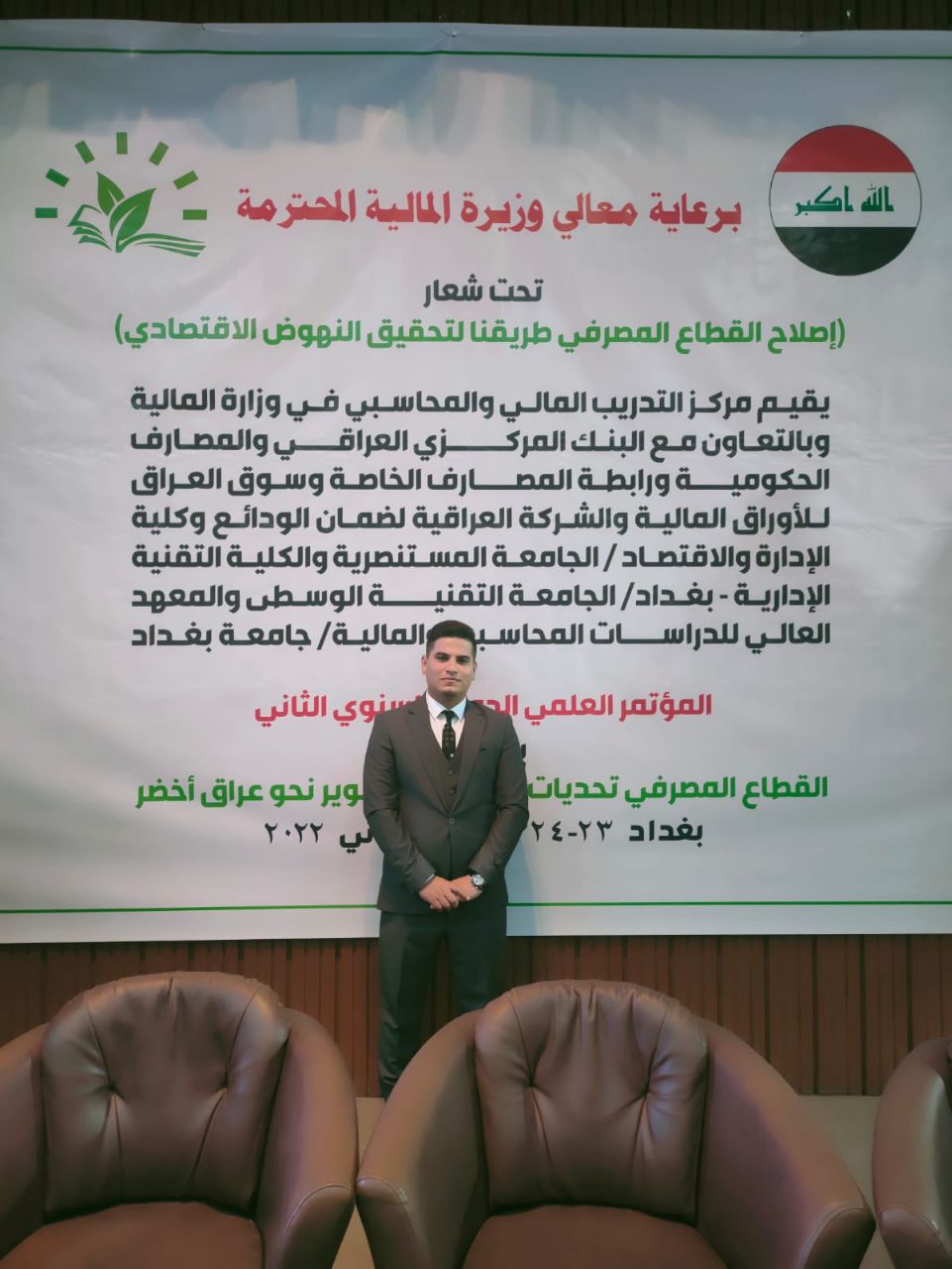 شارك (م.م حيدر ناصر حسين الميالي) التدريسي في كلية الادارة والاقتصاد/ قسم المحاسبة في المؤتمر العلمي الدولي الثاني بعنوان (القطاع المصرفي تحديات الاصلاح والتطوير نحو عراق اخضر) الذي نظمه مركز التدريب المالي والمحاسبي في وزارة المالية العراقية والبنك المركزي العراقي / بغداد للفترة من  23-24/ 11/ 2022 بالبحث الموسوم (اثر تكنولوجيا المعلومات على الاداء المصرفي – دراسة تطبيقية في مصرف المؤسسة العربية الاردني ) بالاشتراك مع السيد مساعد رئيس الجامعة للشؤون العلمية (ا.د عباس كاظم جاسم الدعمي)، وقد حصل البحث على درجة التميز البحثي لافضل البحوث من بين(100 بحث محلي وعالمي) وهي جائزة مادية مقدمة من وزارة المالية العراقية، اذ تسعى كلية الادارة والاقتصاد الى رفع اسم الجامعة في المحافل والمؤتمرات العالمية بالاضافة الى المساهمة في تقديم البحوث العلمية التي تساهم في تحسين واصلاح الاقتصاد العراقي.