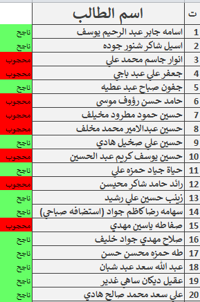 نتائج امتحانات الكورس الاول قسم المحاسبة المرحلة الاولى للدراسة الصباحية والمسائية