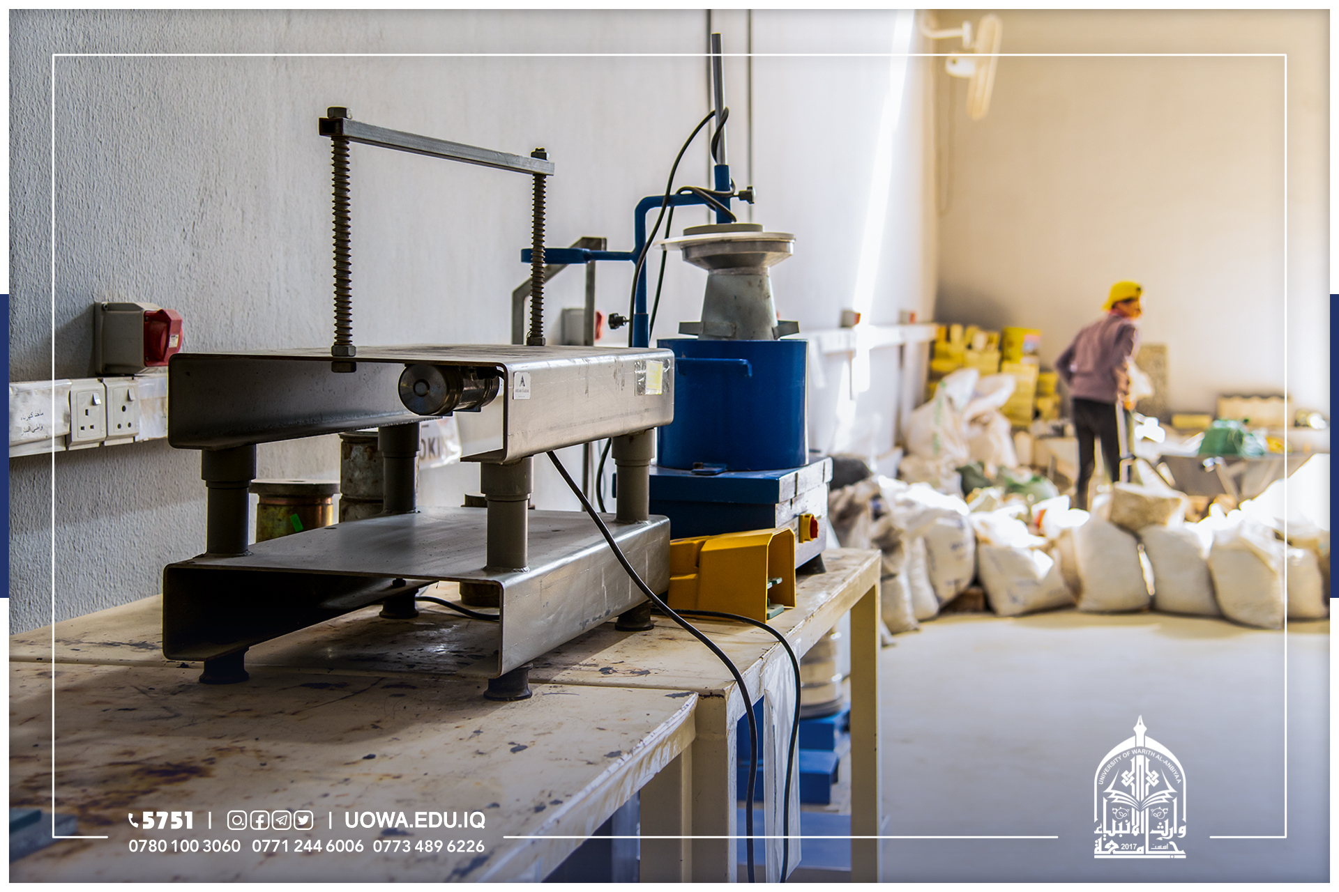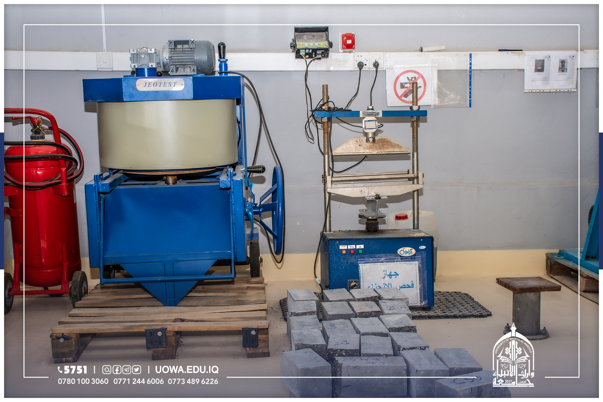 يعنى هذا المختبر بأجراء الفحوصات المختبرية للمواد الانشائية وكذلك الفحوصات المختبرية للإسمنت والمواد الخرسانية والركام (الرمل والحصى) وهذه الفحوصات ضرورية جدا لتمكن الطالب من معرفة كيفية خلط المواد مع بعضها البعض وبنسب معينه ودقيقه ومعرفة المشاكل التي تواجهه في حال لم يتم خلط المواد وفقا للنسب المحددة والظروف القياسية الملائمة التي تؤدي الى نجاح او فشل العينة ومدى مطابقتها للمواصفات الفنية من عدمه بالإضافة الى ذلك تمنح الفحوصات المختبرية دورا مهما يمكن المهندس من معرفة المادة الانشائية الجيدة وتمييزها والتي تؤدي الى زيادة عمر المنشأ