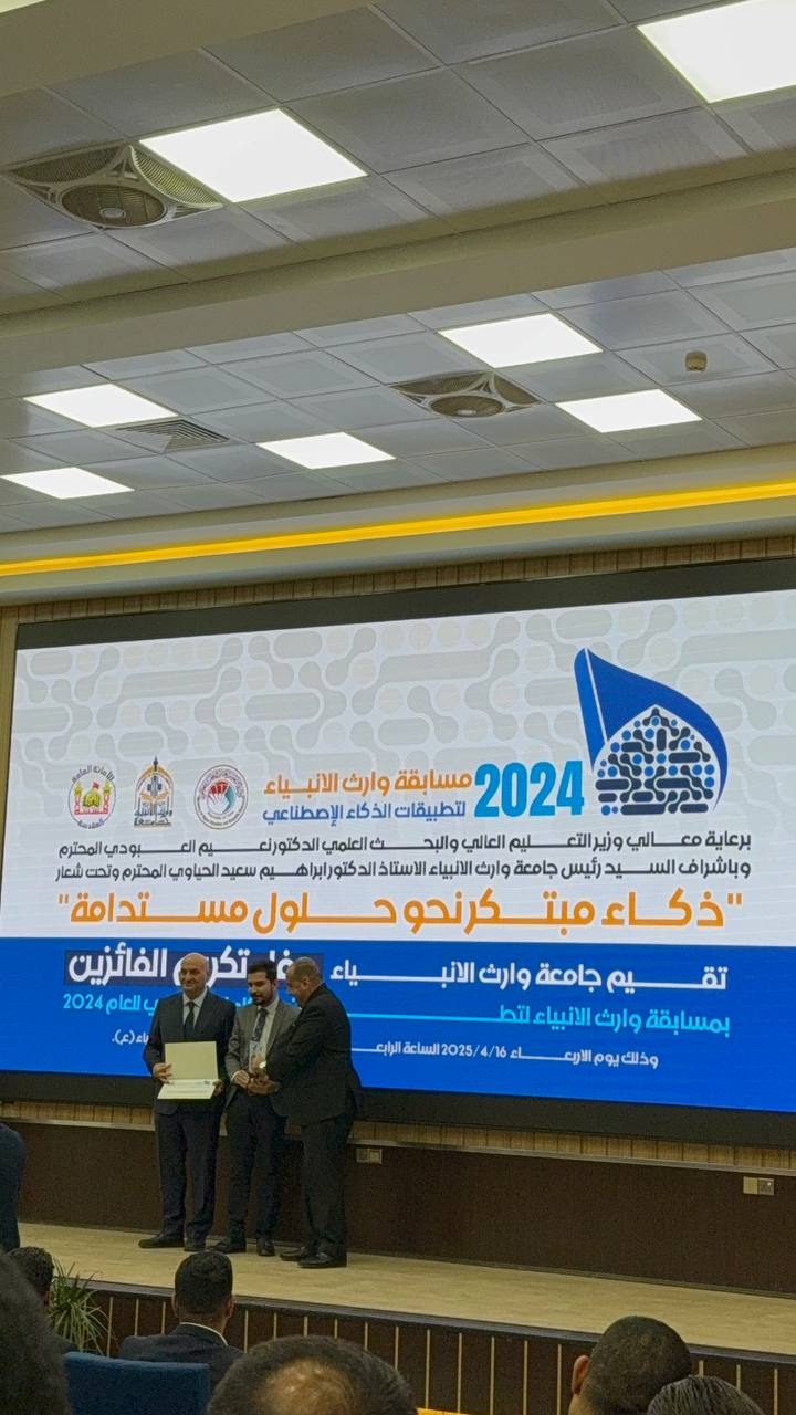 تدريسي في كلية العلوم الإسلامية يحصد المركز الثالث في مسابقة تطبيقات الذكاء الاصطناعي بجامعة وارث الأنبياء