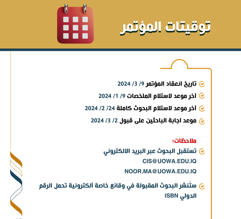 - آخر موعد لاستلام البحوث الكاملة: 24 فبراير 2024.