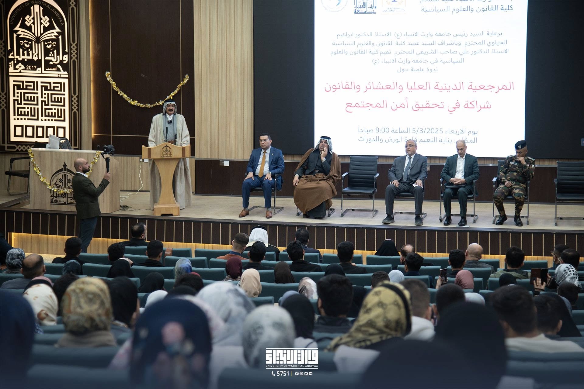 مرجعية الدينية والعشائر والقانون.. شراكة لتحقيق أمن المجتمع في ندوة علمية بجامعة وارث الأنبياء (ع)