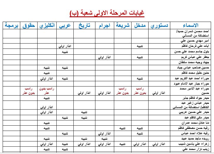 غيابات المرحلة الاولى شعبة(ب)