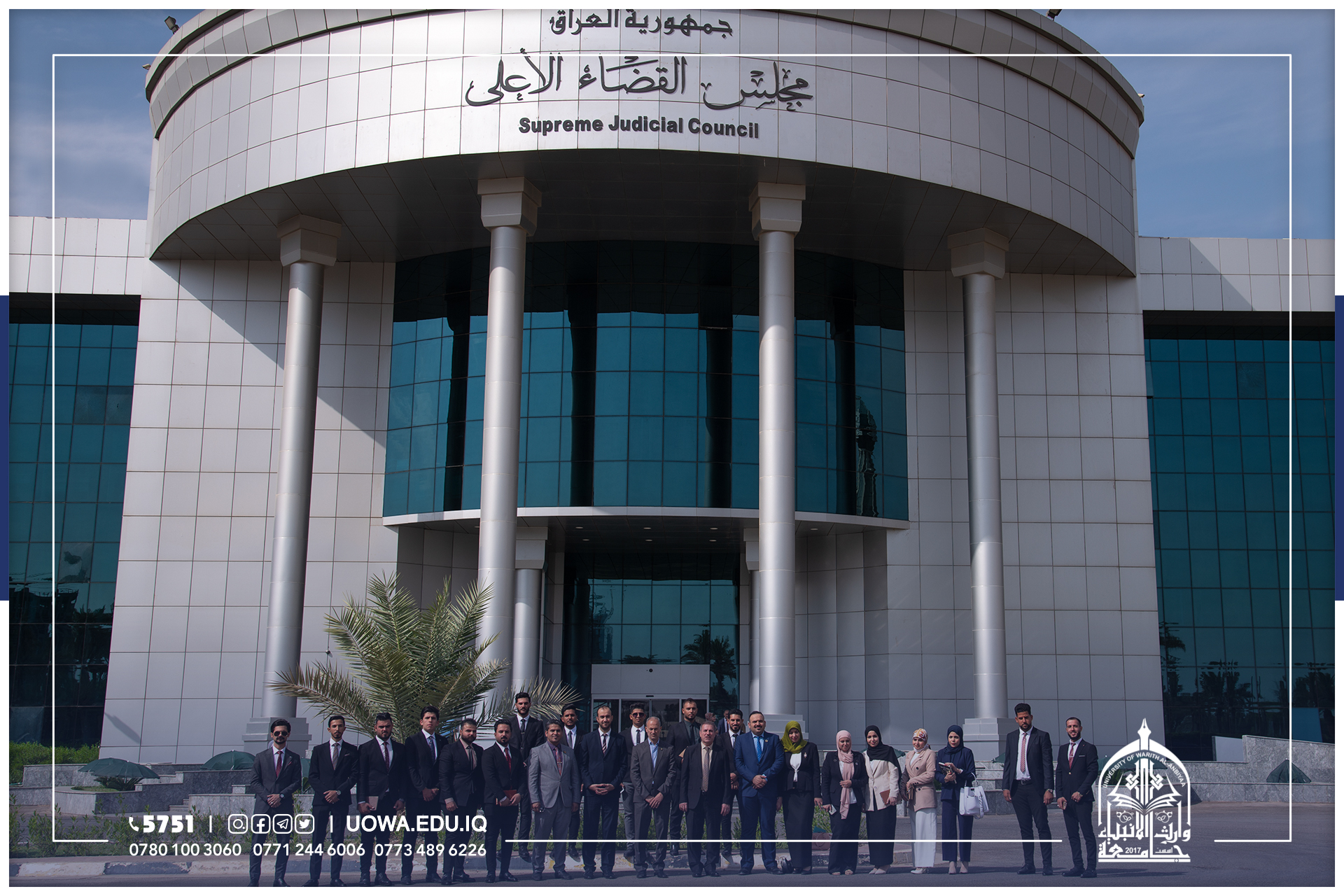 اقامت كلية القانون في جامعة وارث الانبياء(عليه السلام)، سفرة علمية لطلبة الكلية برفقة السادة اعضاء هيئة التدريس الى  إتحاد الحقوقيين العراقيين المقر العام في العاصمة بغداد ،حيث تجول الطلبة برفقة رئيس الاتحاد الدكتور محمد نعمان الداودي  داخل اروقة الاتحاد  والتعرف على الانشطة الفكرية والثقافية له