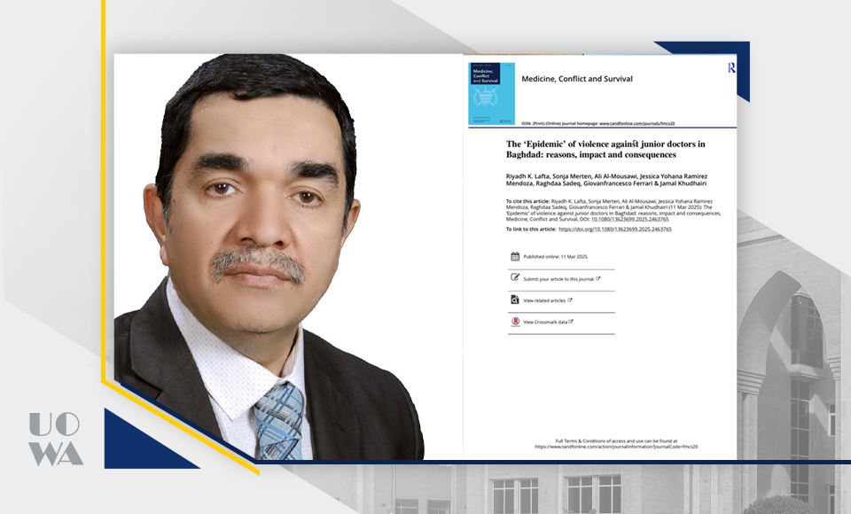 تدريسي في كلية الطب بجامعة وارث الأنبياء ينشر بحثًا علميًا دوليًا حول العنف ضد الأطباء المقيمين في بغداد