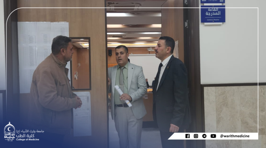 ضمن جولاتهم المستمرة ضمن امتحانات نصف السنة للسنة الدراسية 2023/2024 السيد عميد كلية الطب الاستاذ الدكتور علي عبد سعدون المحترم والمعاون العلمي الدكتور رياض حنيوه المحترم و المعاون الاداري الاستاذ الدكتور علي منصور المحترم في القاعات الامتحانية ومتابعة امتحانات نصف السنة لطلبتنا الاعزاء مع امنياتنا لهم بالموفقية والنجاح.