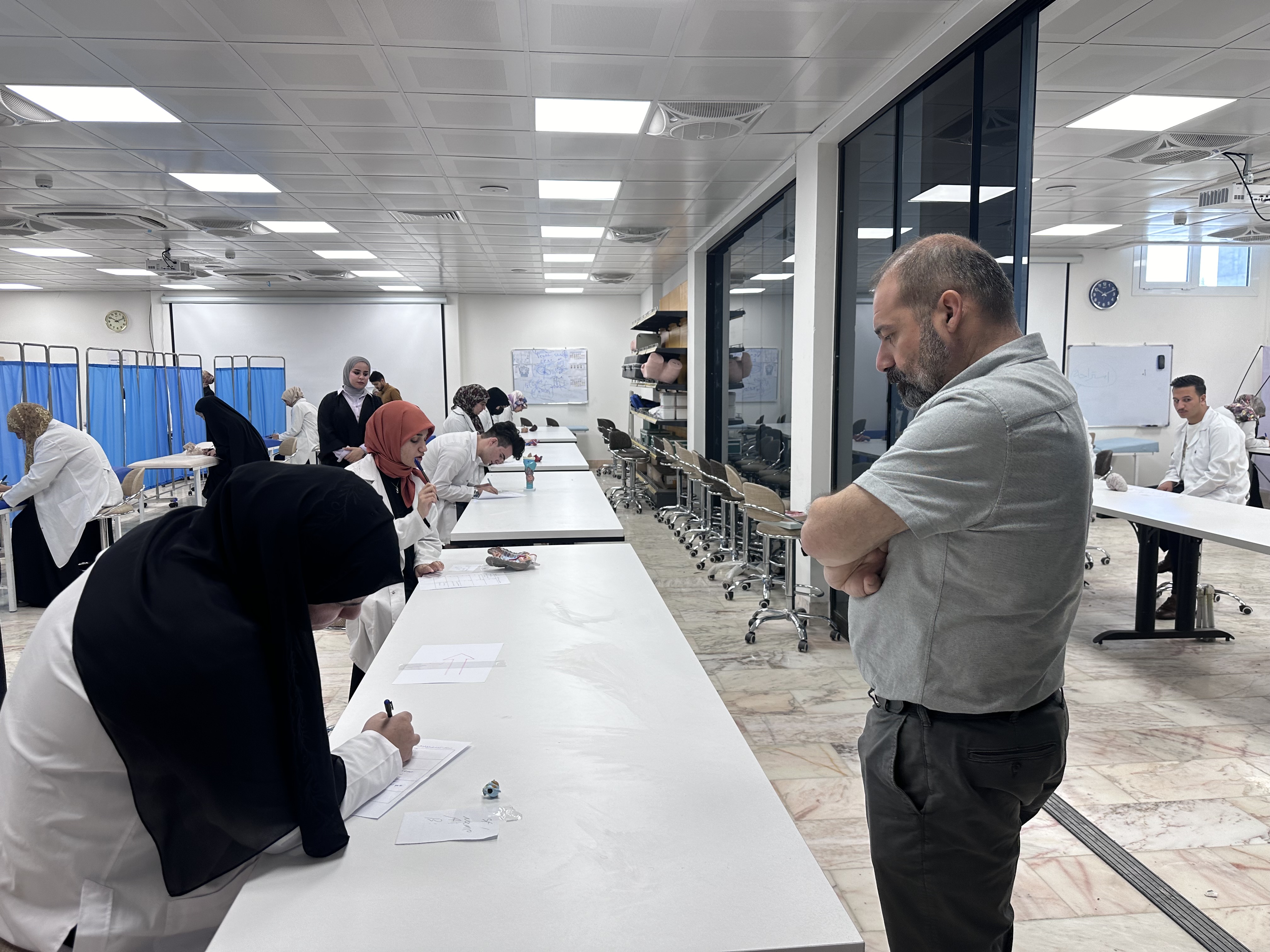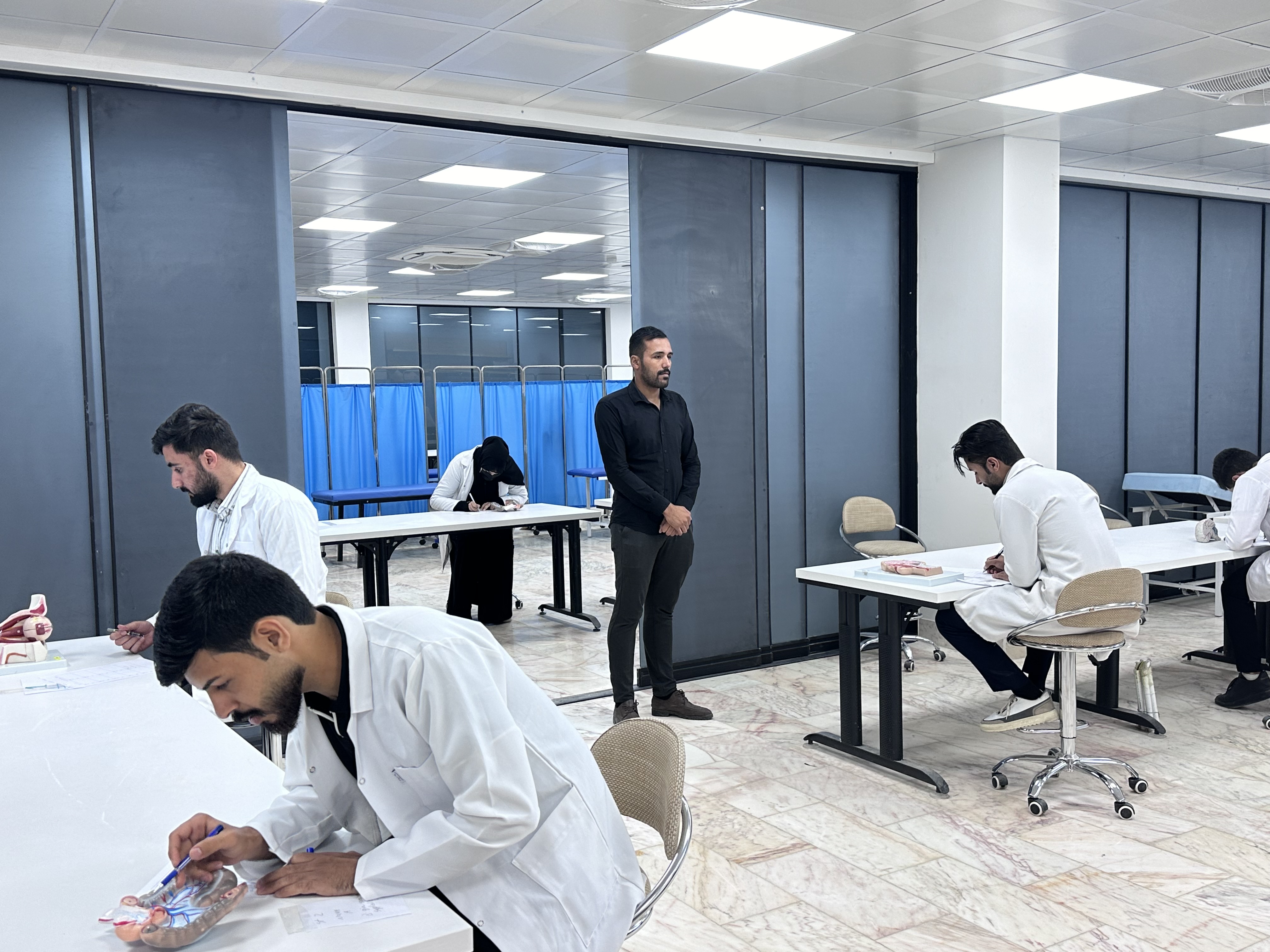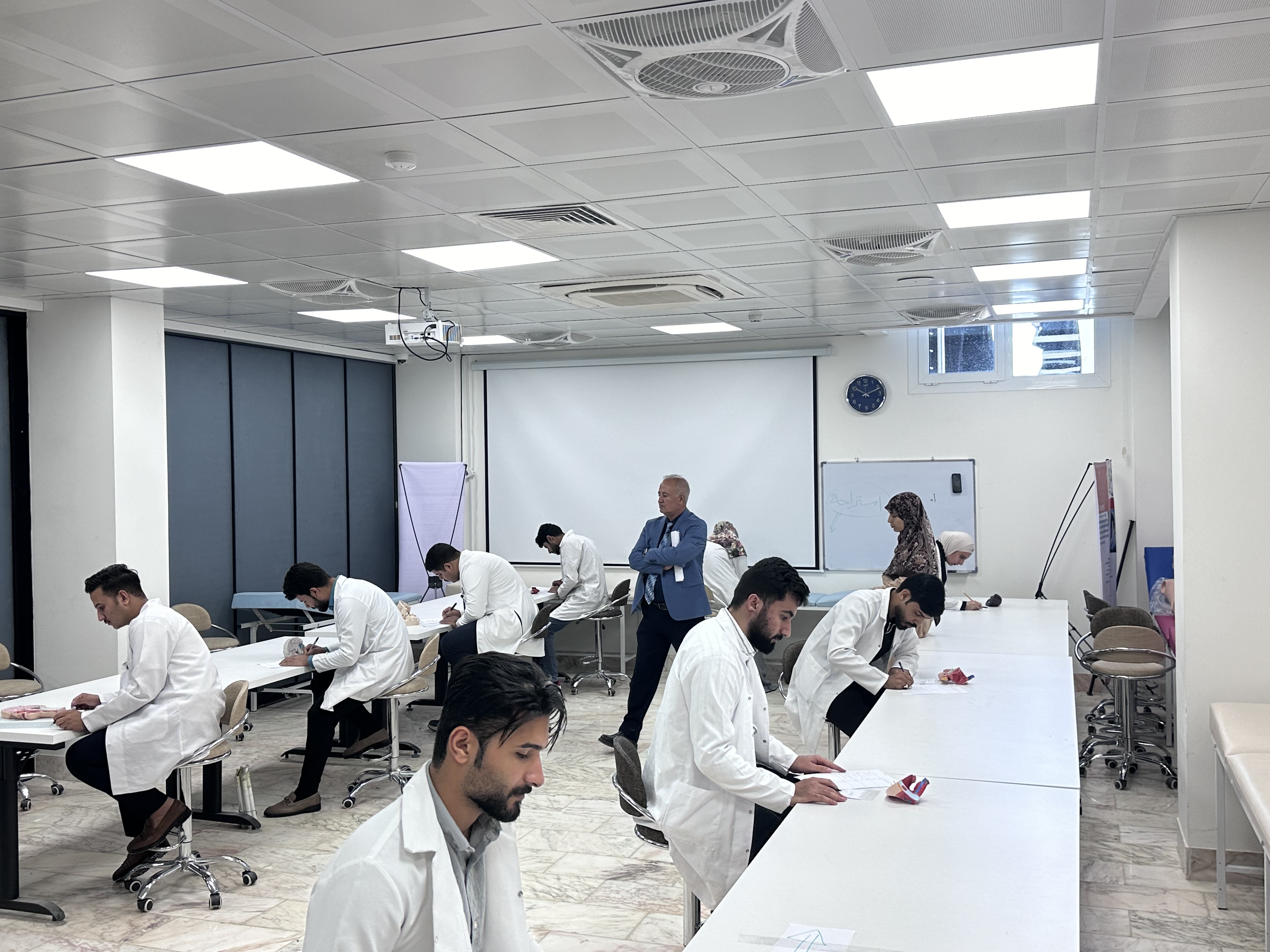 بمتابعة وحضور السيد عميد كلية الطب جامعة وارث الانبياء عليه السلام الاستاذ الدكتور علي عبد سعدون الغزي المحترم والسيد المعاون العلمي الاستاذ الدكتور علي منصور المحترم والسيد المعاون الاداري الاستاذ الدكتور ليث الحسيني المحترم استمرار الامتحانات النهائية العملية في فرع التشريح للمرحلة الثانية مع امنياتنا بالموفقية والنجاح لطلبتنا الاعزاء