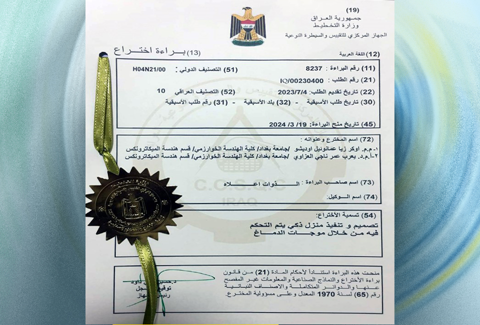 براءة اختراع في جامعة بغداد لتصميم منزل ذكي قابل للتحكم عبر موجات الدماغ