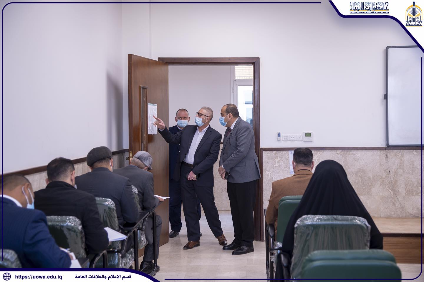 وسط إجراءات وقائية وصحية، بدأت في جامعة وارث الأنبياء(عليه السلام) الامتحانات الحضورية في كليات واقسام الجامعة، حيث اجرى السيد رئيس الجامعة الأستاذ الدكتور إبراهيم الحياوي والسيد المساعد العلمي الأستاذ الدكتور عباس الدعمي جولة تفقدية للاطلاع على سير الامتحانات الحضورية والإلكترونية، و أوعز السيد رئيس الجامعة بتوفير كافة المتطلبات اللوجستية وأكد على اتباع الإجراءات الوقائية للحفاظ على سلامة طلبتنا الأعزاء من خلال حثهم على الالتزام بالإجراءات الوقائية من لبس الكمامة والتعقيم المستمر .