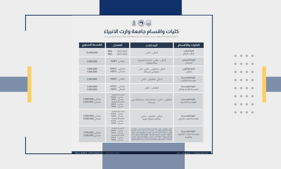 تعرف على تخصصات جامعة وارث الانبياء المتنوعة