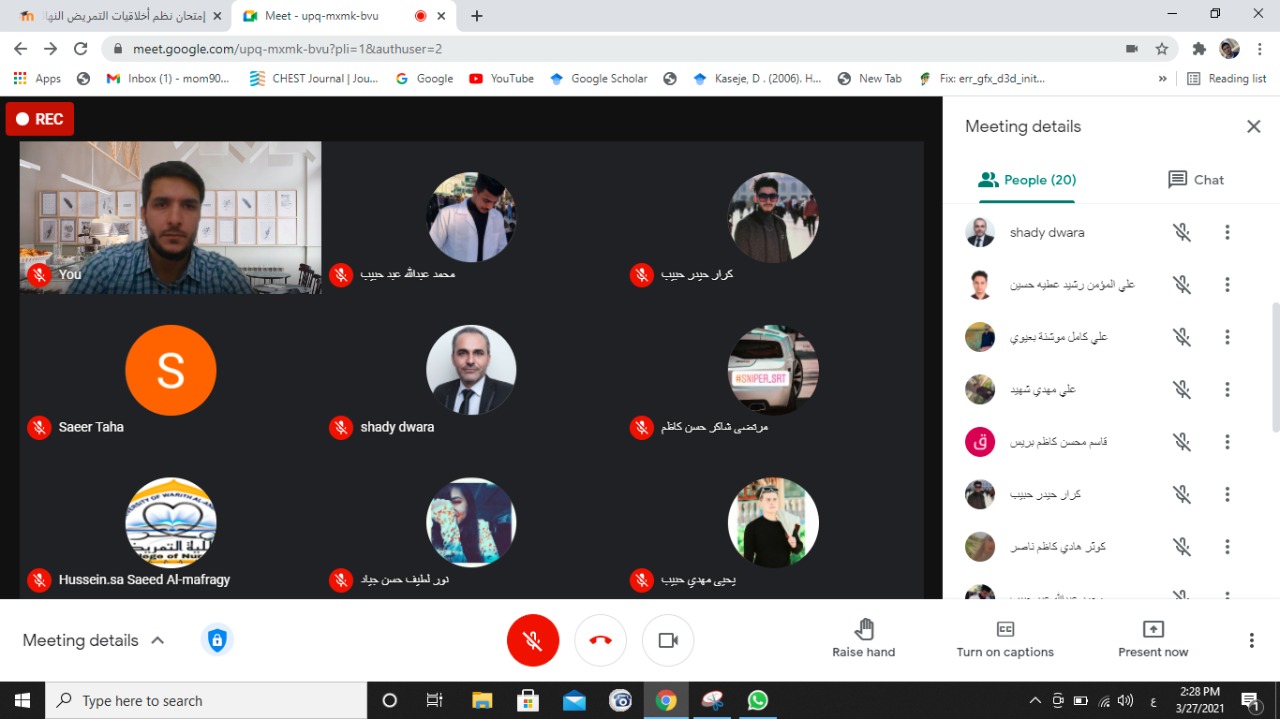زار الفريق الوزاري القاعات الالكترونية لكلية التمريض للاطلاع على سير الامتحانات حيث رافق الفريق الكترونيا السيد مساعد رئيس الجامعة للشؤون العلمية الدكتور عباس الدعمي والدكتور حيدر الغانمي مسؤول شعبة التعليم الالكتروني حيث اشاد الفريق بالتنظيم العالي في اجراء الامتحانات الالكترونية لطلبة الكلية.