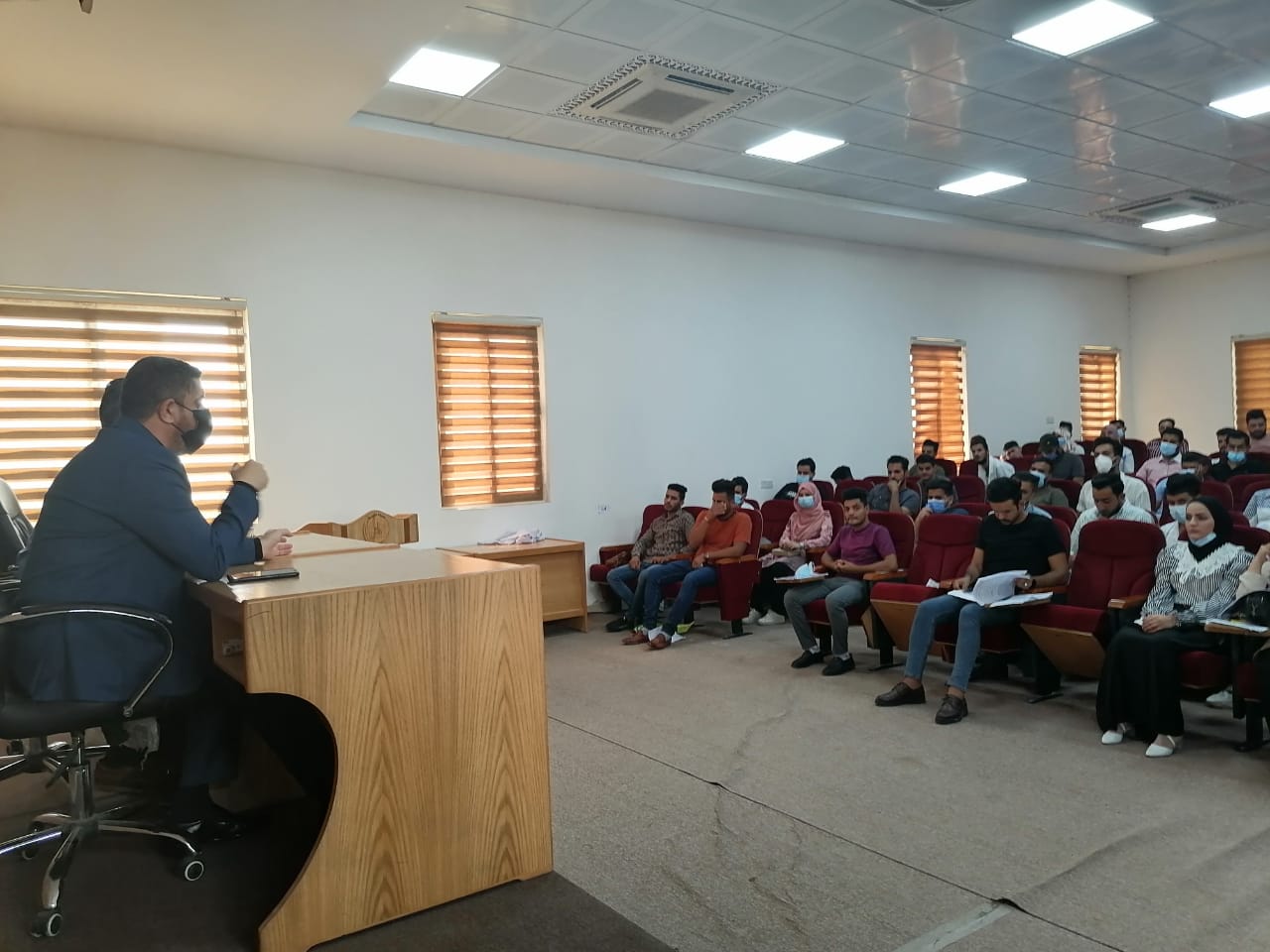 التقى الاستاذ المساعد الدكتور مرتضى غانم الجبوري عميد كلية التمريض مع طلبة المرحلة الرابعة حيث ناقش السيد العميد عدة مواضيع مع الطلبة اهمها التوجيهات المركزية حول اجراء الامتحانات النهائية وكذلك تم التطرق لصورة وحفلة التخرج واهميتها بالنسبة لطلبة المرحلة الرابعة والتي تعتبر الدفعة الاولى التي ستتخرج من كلية التمريض في جامعة وارث الانبياء ع