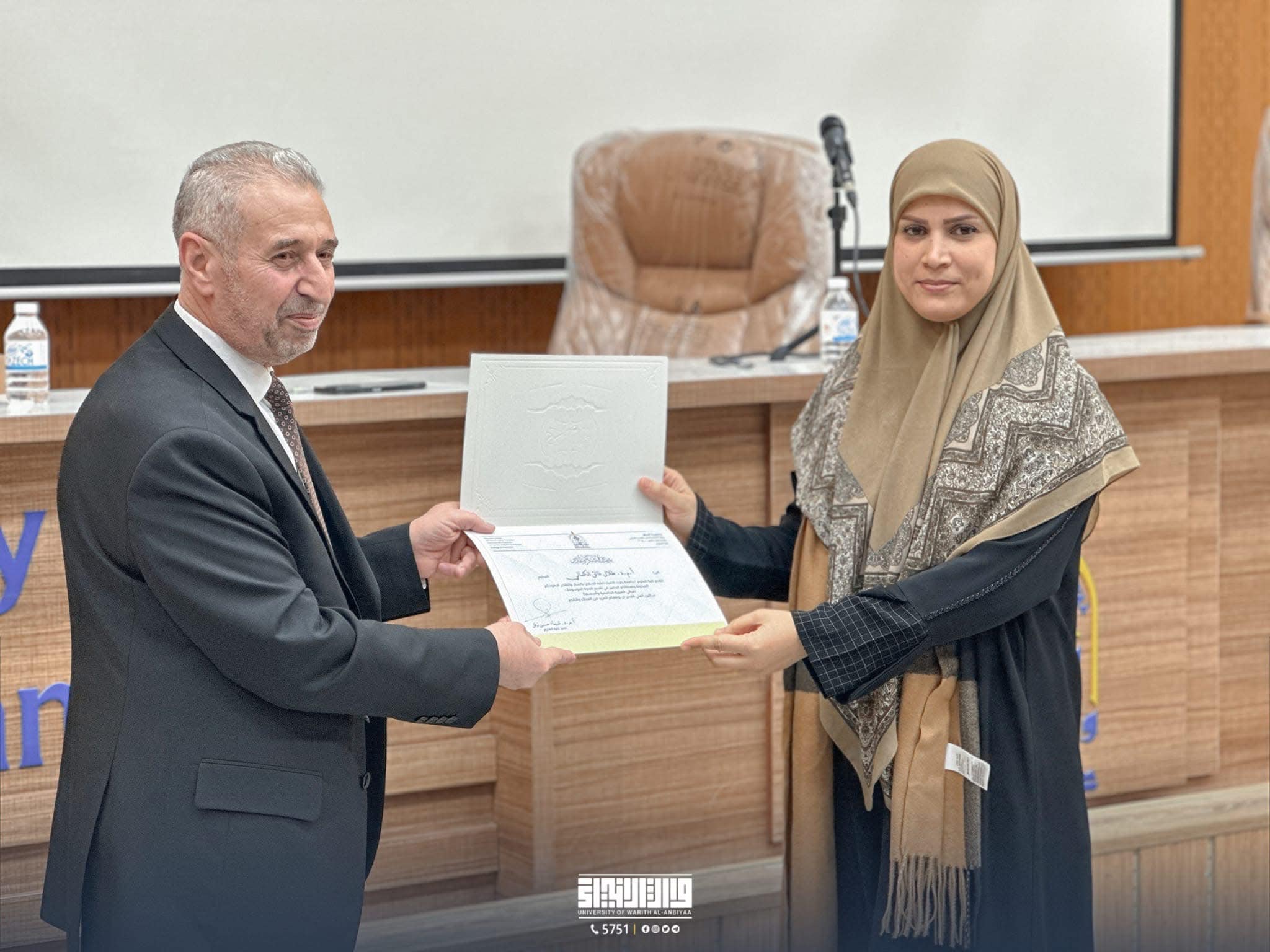 بتوجيه من السيد عميد كلية العلوم المحترم الاستاذ المساعد الدكتورة شيماء حسين نوفل نضمت كلية العلوم بجامعة وارث الأنبياء (عليه السلام) ندوة ثقافية بعنوان “بناء الهوية الجامعية وأسسها”، قدمها عميد كلية العلوم الإسلامية، الأستاذ المساعد الدكتور طلال الكمالي. الندوة استهدفت طلبة الكلية وسلطت الضوء على أهمية الهوية الجامعية ودورها في تعزيز القيم الأكاديمية والثقافية لدى الطلبة.