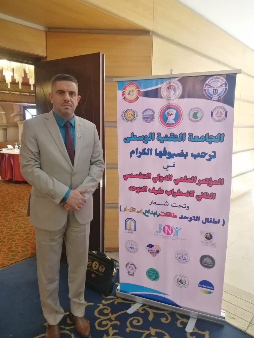 شارك السيد عميد كلية التمريض الاستاذ المساعد الدكتور مرتضى الجبوري ببحث علمي في المؤتمر العلمي الطبي التخصصي الثاني الذي أقامته الجامعة التقنية الوسطى (حول اضطرابات طيف التوحد)وجاء البحث بعنوان (علاقة الصحة النفسية العامة للأبوين مع شدة اضطرابات طيف التوحد للأطفال)Relationship between General Mental Health of Parents and Severity of Autism Spectrum Disorders of Children