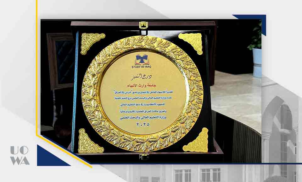 كرّمت عمادة كلية العلوم الإسلامية في جامعة وارث الأنبياء (عليه السلام) الأستاذ الدكتور إبراهيم سعيد الحياوي، رئيس الجامعة، وذلك تثميناً لجهوده المتميزة في دعم وإنجاح مشروع "كلمات من نور"، الذي يهدف إلى كتابة المصحف الشريف بخط اليد من قبل طلبة الجامعة. ويُعد هذا المشروع من المبادرات الرائدة التي تُعزز القيم الدينية والثقافية، وتسهم في ترسيخ الهوية الإسلامية لدى الطلبة.