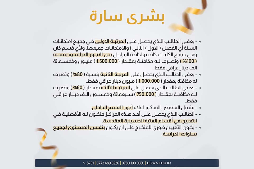 بشرى سارة لطلبة جامعة وارث الأنبياء
