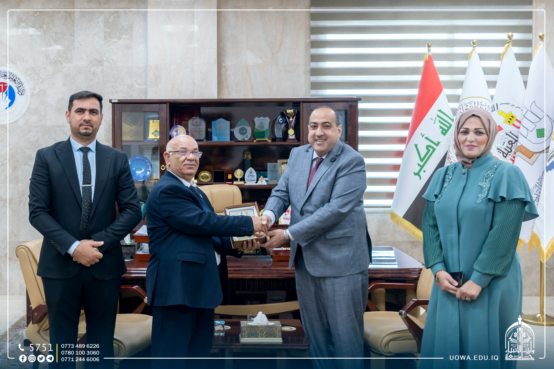 استقبلت رئاسة جامعة وارث الانبياء (عليه السلام) متمثلة بالاستاذ الدكتور ابراهيم الحياوي وفد عمادة كلية الطب في جامعة كربلاء برئاسة الاستاذ الدكتور رياض صيهود الزبيدي عميد الكلية وجاءت هذه الزيارة لتعزيز التعاون العلمي بين كليتي الطب في جامعة وارث الانبياء(عليه السلام) وجامعة كربلاء، وتعميق العلاقات المشتركة في مجال تطوير المناهج وطرائق التدريس.