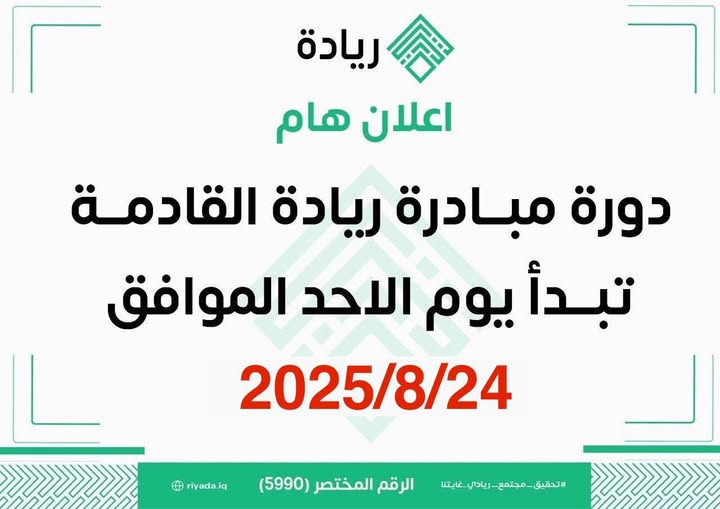 ويمكن للمستفيدين متابعة التسجيل والمشاركة عبر تطبيق مبادرة ريادة من خلال الرابط: Riyada.iq/apps.