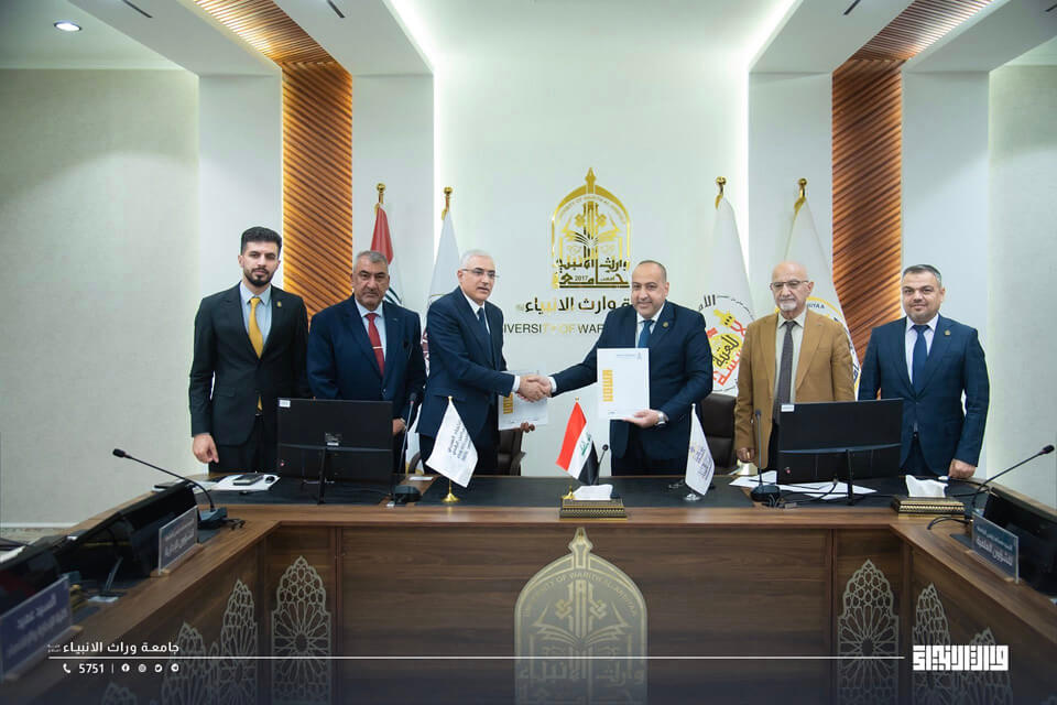 Professor Dr. Ibrahim Saeed Al-Hayawi, President of the University of Warith Al-Anbiyaa (PBUH), signed a scientific cooperation agreement with the Arab Union for Digital Empowerment in the State of Libya, represented by its President, Professor Dr. Abbas Al-Jubouri, in the presence of the university’s vice presidents.