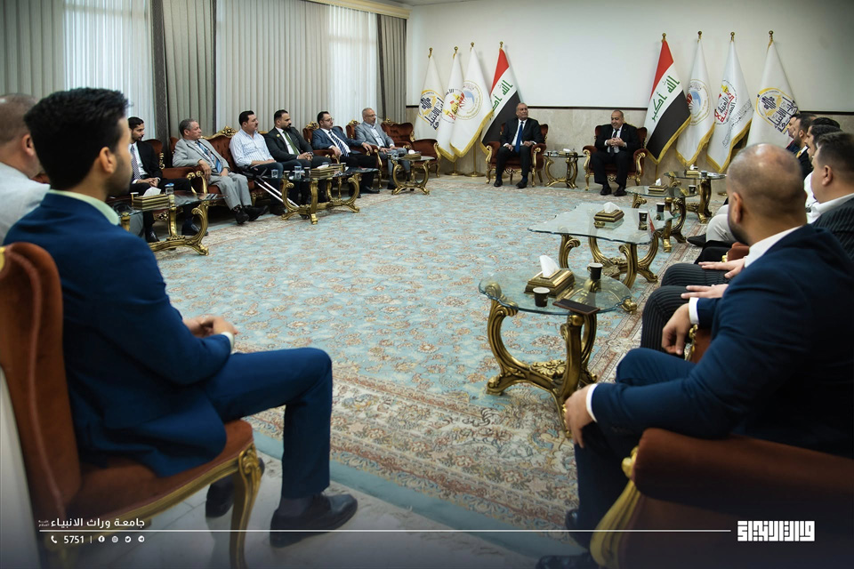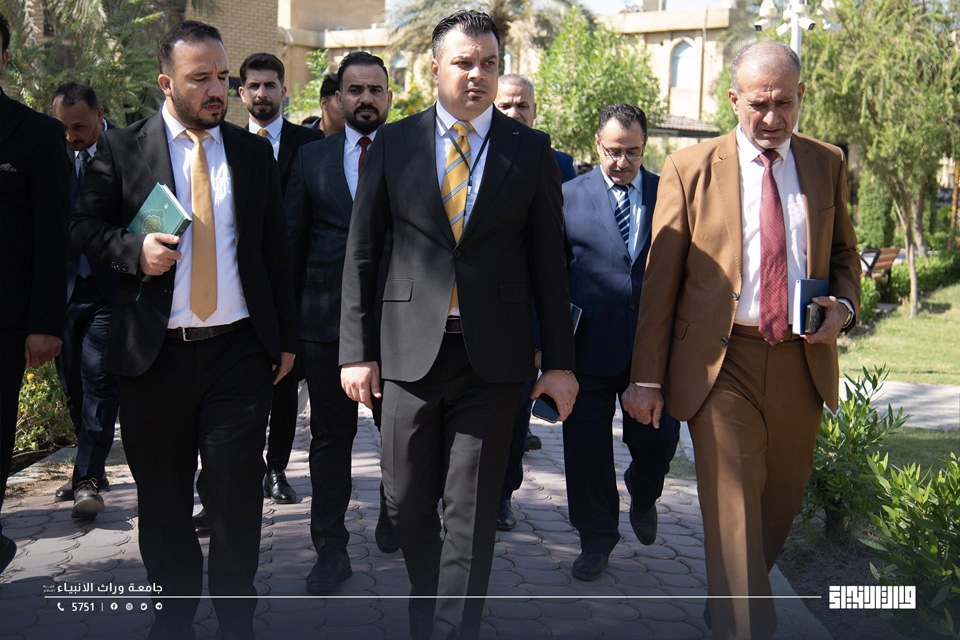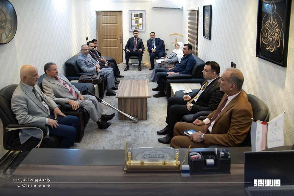 The President of the University of Warith Al-Anbiyaa, Professor Dr. Ibrahim Saeed Al-Hayyawi, received the National Program Accreditation Team during their visit to the College of Law as part of the academic accreditation procedures for the Law Program under the supervision of the Ministry of Higher Education and Scientific Research.