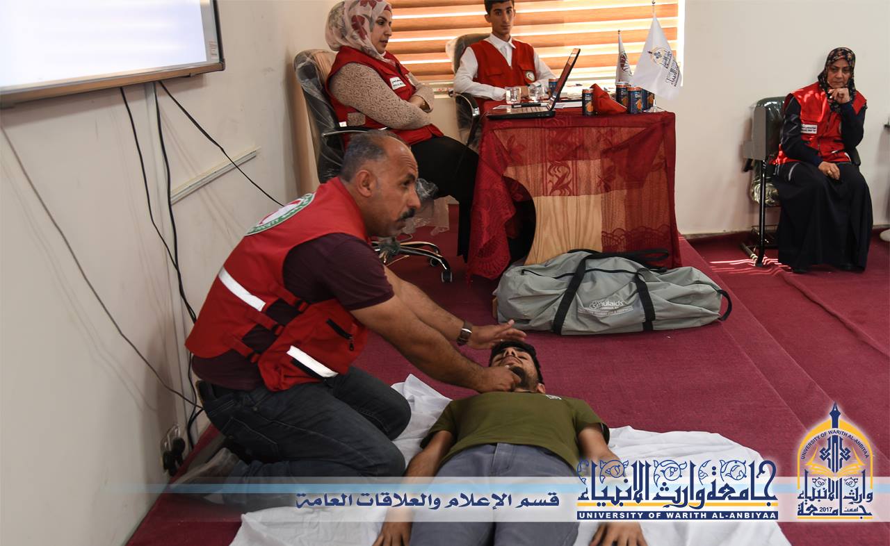 "Warith Al-Anbiyaa University, in collaboration with the Iraqi Red Crescent Society, Karbala Branch, is organizing a First Aid Workshop for university students, as part of its commitment to promoting volunteerism and supporting community engagement. The workshop, led by Sabah Al-Hilali, a trainer from the Red Crescent Society, encompasses essential principles of the Red Crescent, working procedures, and providing initial assistance to the injured. The university and students have shown great enthusiasm and dedication towards volunteer work, offering their time and efforts. In the upcoming days, there will be intensive programs focusing on proper handling and administering correct first aid techniques to those in need."