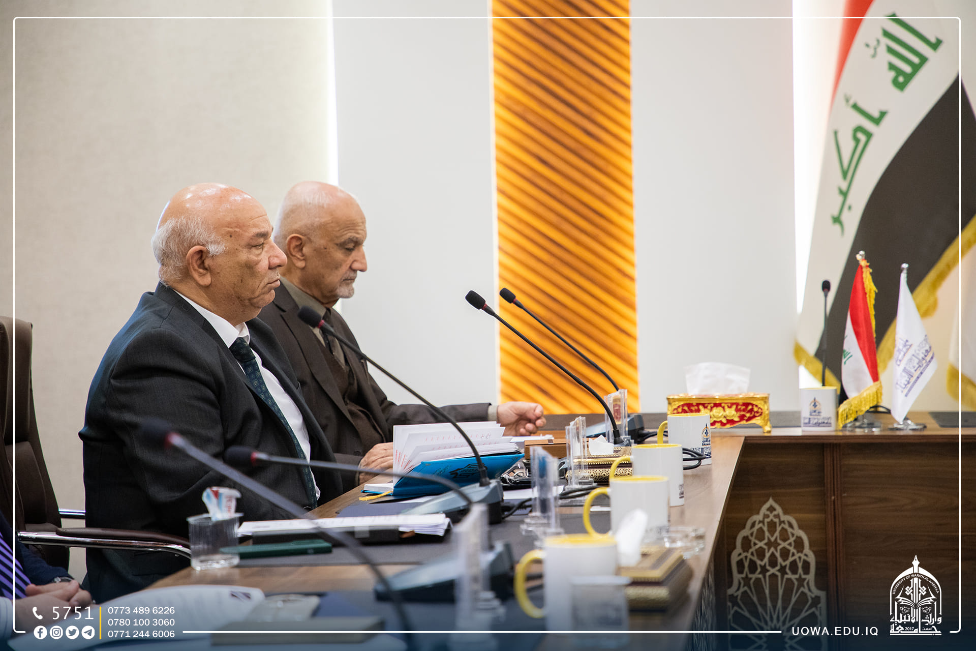 The University of Warith Al-Anbiyaa (peace be upon them) held its regular council session under the presidency of Professor Dr. Ibrahim Al-Hayawi. The meeting was attended by the vice presidents of the university for administrative and academic affairs, as well as the deans of the colleges.