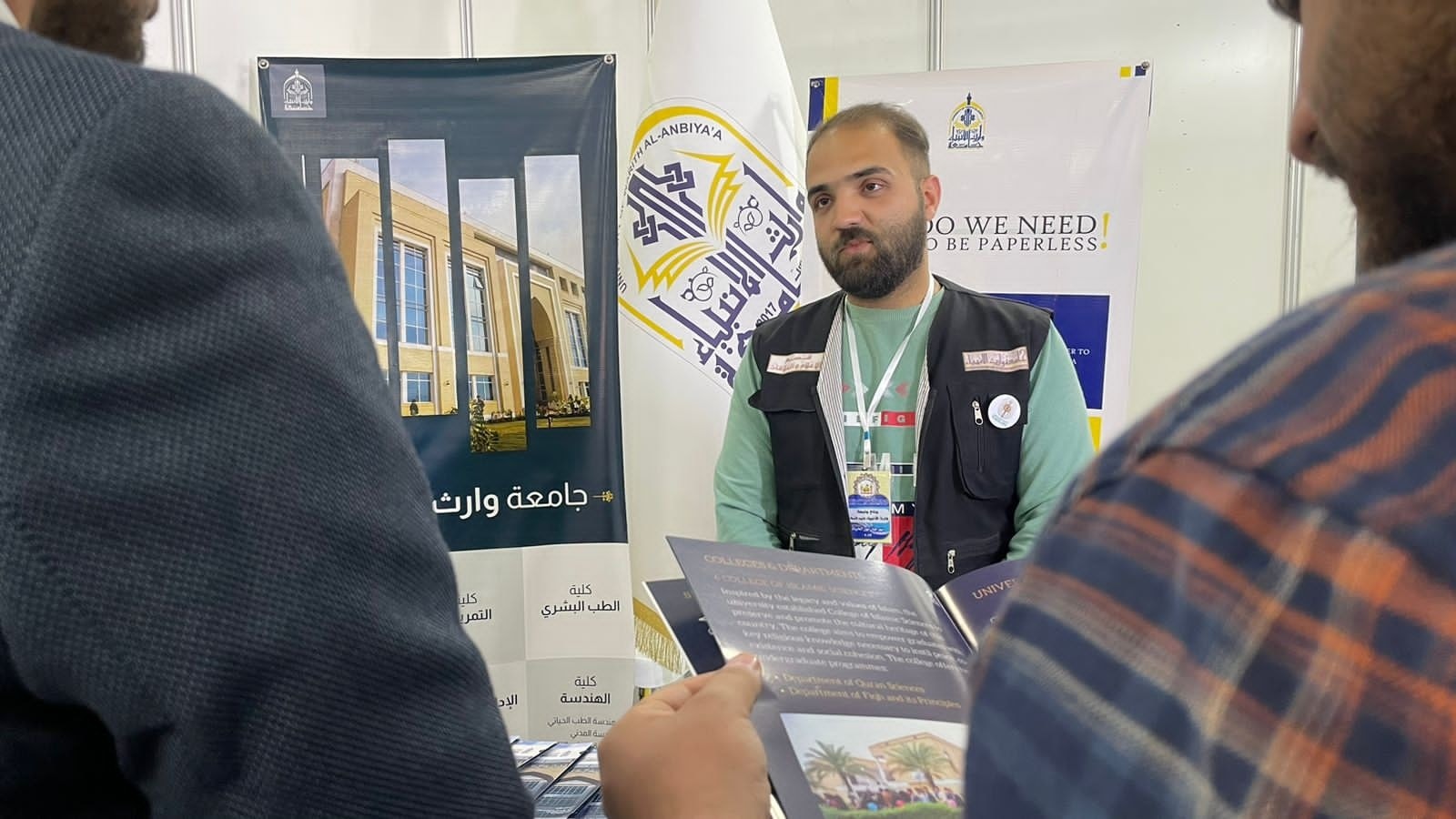 In the presence of the religious custodian of the Abbasid Holy Shrine, His Eminence Sayed Ahmed Al-Safi, and the Deputy Secretary-General of the Holy Hussein Shrine, Dr. Alaa Diaa Al-Din, the University of Warith Al-Anbiyaa participated, represented by the Media and Public Relations Department, in the (Ain Al-Hayat) festival organized by the "Al-Qabas Foundation for Culture and Development." The festival included the participation of the holy shrines in Iraq and various religious institutions, aiming to clarify the correct ideology and upright behavior to confront intellectual deviations and attacks faced by society, especially in religious aspects, including Mahdavi thought issues.