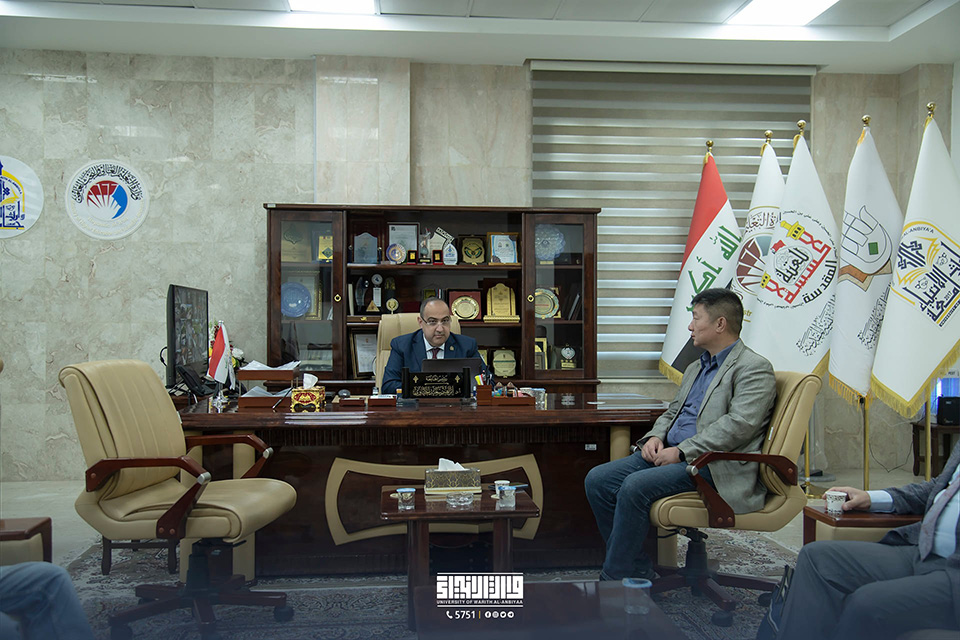 Within the framework of scientific and cultural communication between universities, a delegation from the Chinese University of Nanjing visited the University of Warith Al-Anbiyaa (PBUH). They were received by His Excellency the President of the University, Professor Dr. Ibrahim Saeed Al-Hayawi, Assistant President of the University for Scientific Affairs, Professor Dr. Waqed Al-Moussawi, in addition to a number of deans and heads of scientific and administrative departments.