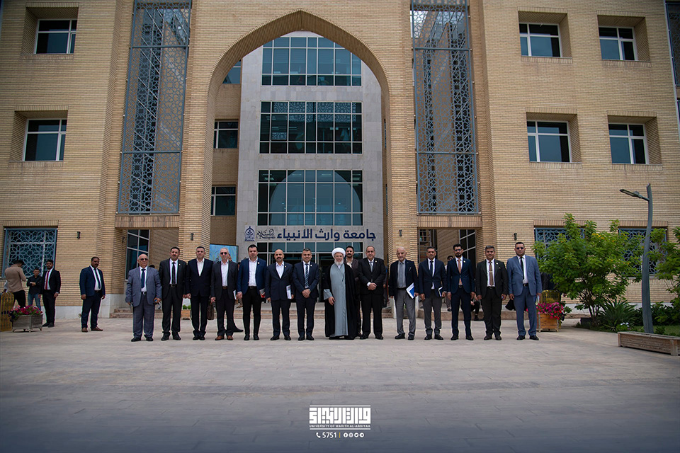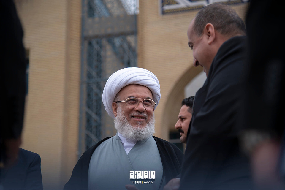Warith Al-Anbiyaa University (PBUH) was honoured to host the Supreme Religious Authority's representative, His Eminence, the legal guardian of the Holy Shrine of Imam Hussein (PBUH), Sheikh Abdul Mahdi Al-Karbalai (may he always be honoured). The university's president, Professor Dr. Ibrahim Al-Hayawi, the administrative assistant, Professor Dr. Nofal Al-Araji, the scientific assistant, Professor Dr. Waqid Al-Mousawi, as well as college deans, received the dignitaries.