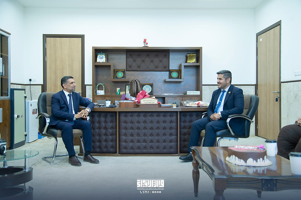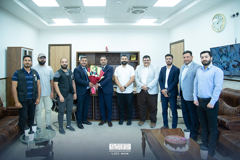 The Head of the Department of Media and Government Communications, Dr. Mahdi Al-Saadi, along with members of his media and relations team, congratulated and offered blessings to Assistant Professor Dr. Hussein Hadi Al-Awadi on his appointment as Dean of the College of Engineering. They also prayed to Allah Almighty for success and continued advancement in his service to the scientific process in our beloved nation.