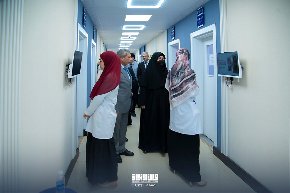 In the presence of Dr. Zainab Al-Sultani, president of Al-Zahra University (PBUH), the University of Warith Al-Anbiyaa (PBUH) held the clinical examination (OSCE) for the subject of "Hospitals" for female students in the Faculty of Pharmacy.