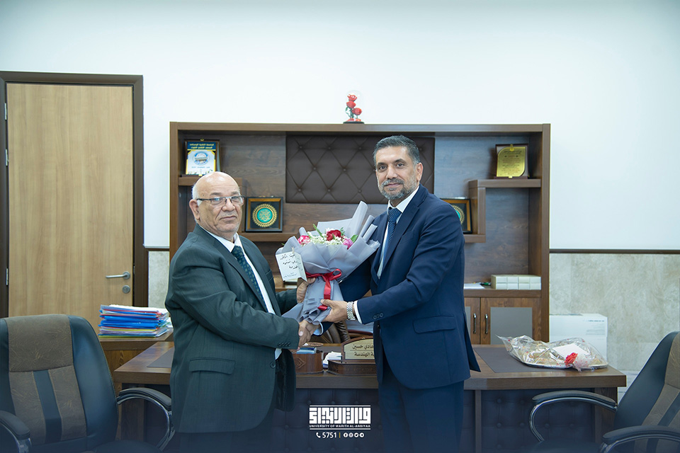 Professor Dr. Awad Al-Khalidi, Dean of the College of Administration and Economics, and his accompanying delegation congratulated and bestowed blessings on the Dean of the College of Engineering on the issuance of the ministerial order appointing Assistant Professor Dr. Hussein Hadi Al-Awadi to the Deanship of the College of Engineering. They also prayed to Allah Almighty for success and continued advancement in support of the scientific march in our beloved nation.