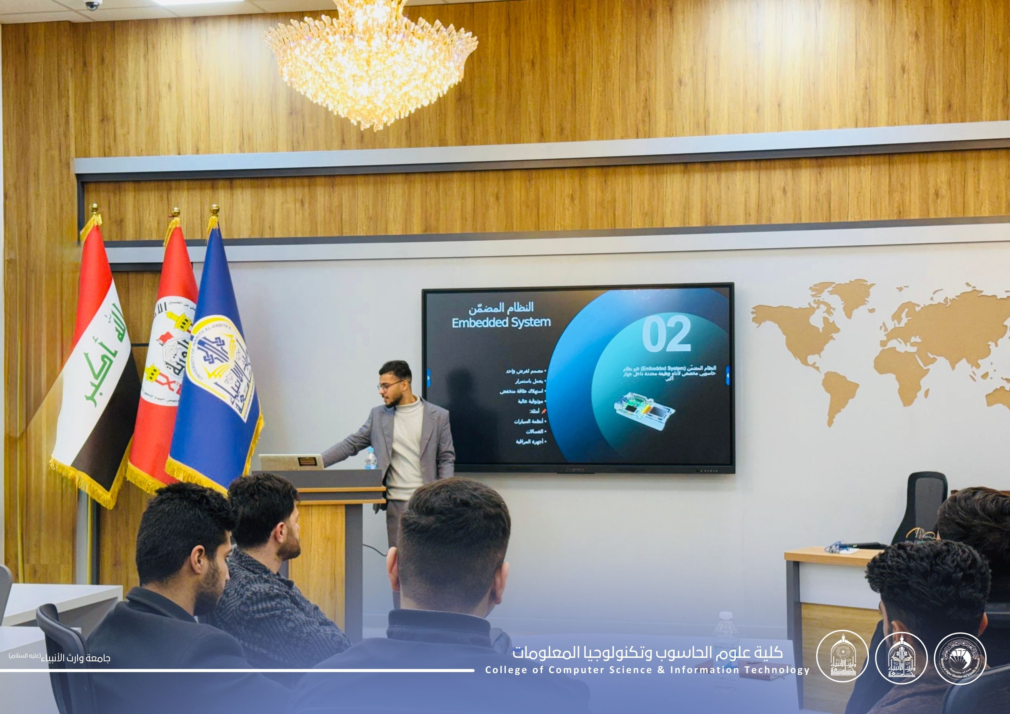 The activities of the Arduino Learning Workshop continued for the second consecutive day at the College of Computer Science and Information Technology – University of Warith Al-Anbiyaa (peace be upon him), with notable interaction from first-year students.