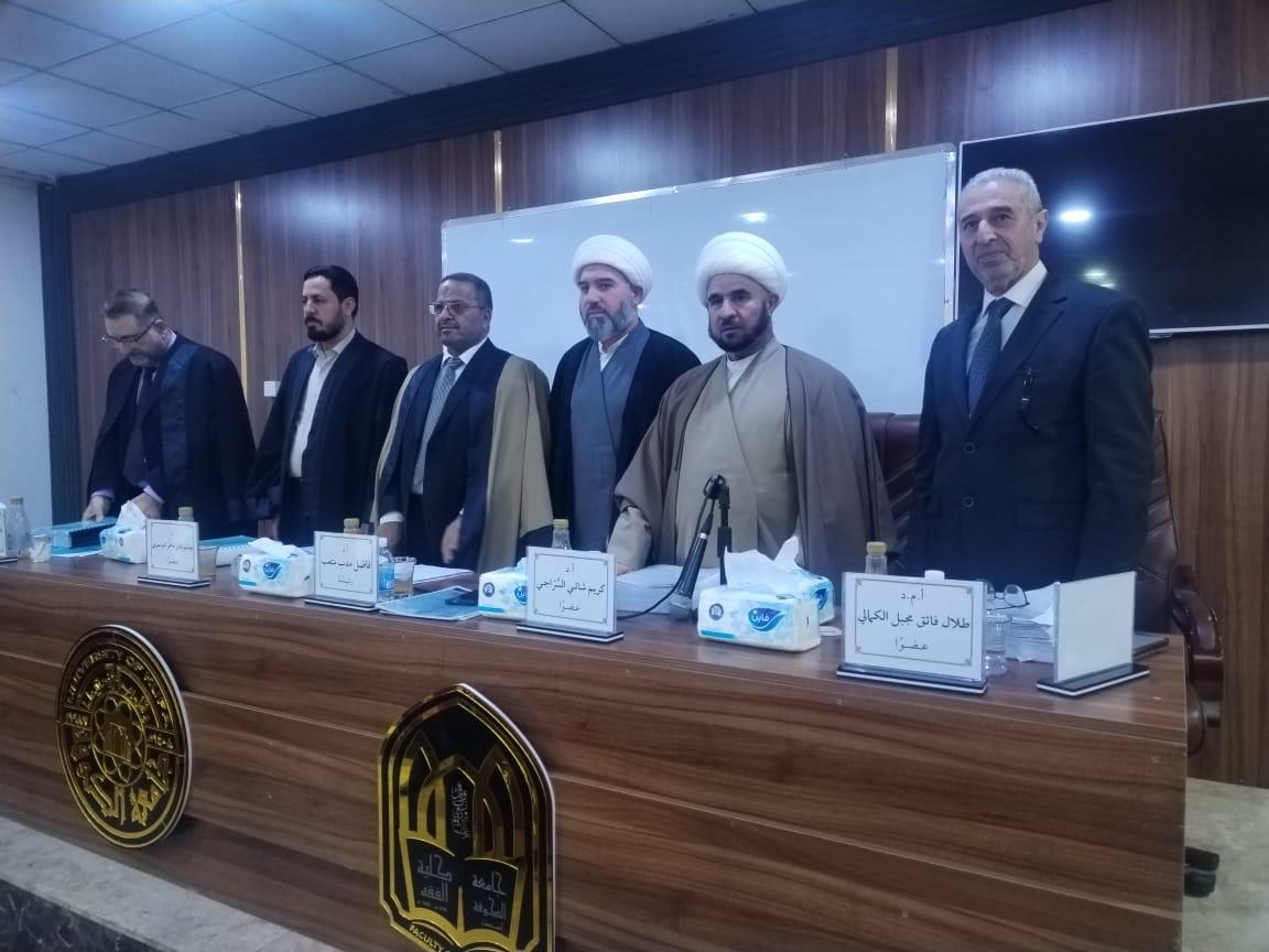 Prof. Dr. Talal Faiq Al-Kamali, Dean of the College of Islamic Sciences at Al-Warith University of the Prophets, participated as a member of the thesis defense committee for the PhD dissertation presented by student Raad Abdul Ahmed Sultan. The defense, aimed at obtaining a PhD degree, took place at the Faculty of Jurisprudence, University of Kufa, on Wednesday, February 28, 2024, at 9:00 AM.