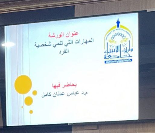Within the framework of ongoing cooperation between Warith Al-Anbiyaa University and the University of Karbala, Lecturer Mr. Abbas Adnan Kamel Al-Janabi conducted a developmental workshop titled “Skills That Shape One's Personality”, with the participation of a group of students and faculty members.