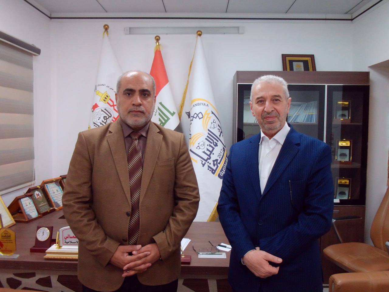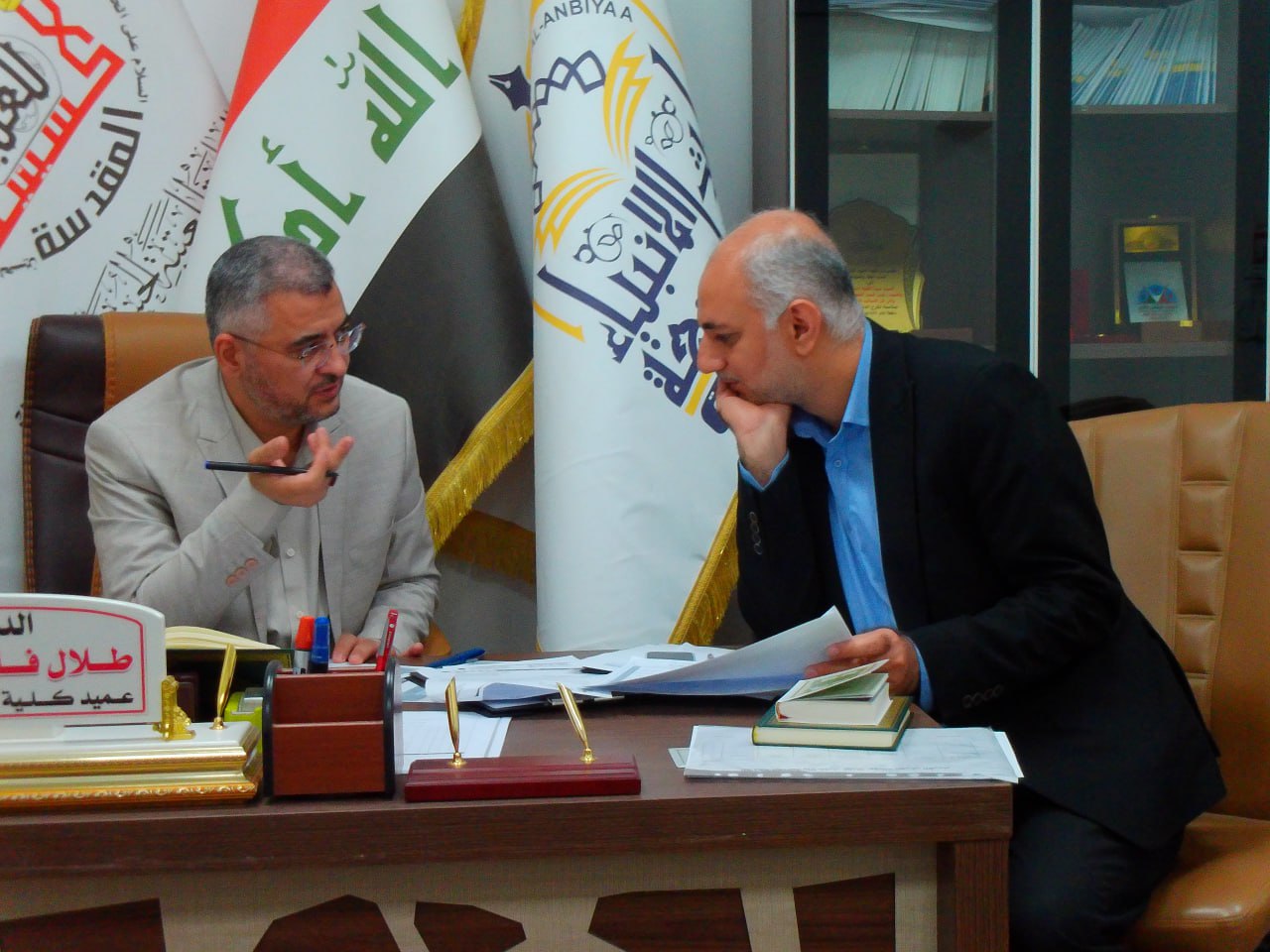 The Dean of the College of Islamic Sciences at Warith Al-Anbiyaa University (peace be upon him), Dr. Talal Faiq Al-Kamali, received the Dean of the College of Islamic Sciences at the University of Baghdad, along with the accompanying delegation, during a visit aimed at strengthening academic and scientific relations between the two colleges.