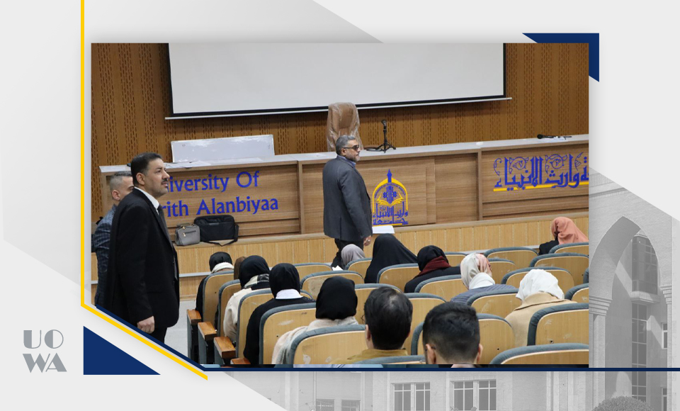 In the presence of the Dean of the College, Professor Dr. Ali Abd Saadoun Al-Ghazi. The College of Medicine at the University of Heir al-Anbiya (peace be upon him) hosted His Eminence Sheikh Zaman al-Hasnawi (may his success be long) to give an educational lecture to university students.