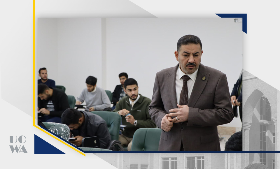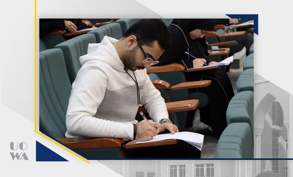 In the presence of the Dean of the College, Prof. Dr. Ali Abdul Saadoun, the Scientific Assistant, Assistant Professor Dr. Laith Al-Hussaini, and the Administrative Assistant, Lecturer Dr. Anwar Al-Dahan, the first stage exam for the subjects of Medical Terminology and Human Rights was conducted in eight classrooms, where the exams were conducted in an organized atmosphere according to the approved academic regulations and instructions. The Deanship of the College was keen to follow up on the progress of the exams in the field, and to ensure that the appropriate environment was provided for students to take their exams smoothly, while adhering to the organizational procedures that ensure transparency and justice. The importance of preparing the exam halls and providing the necessary supplies to ensure the comfort of students during the exam was also emphasized.