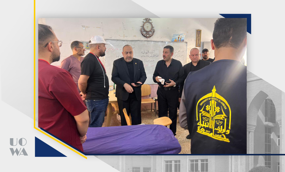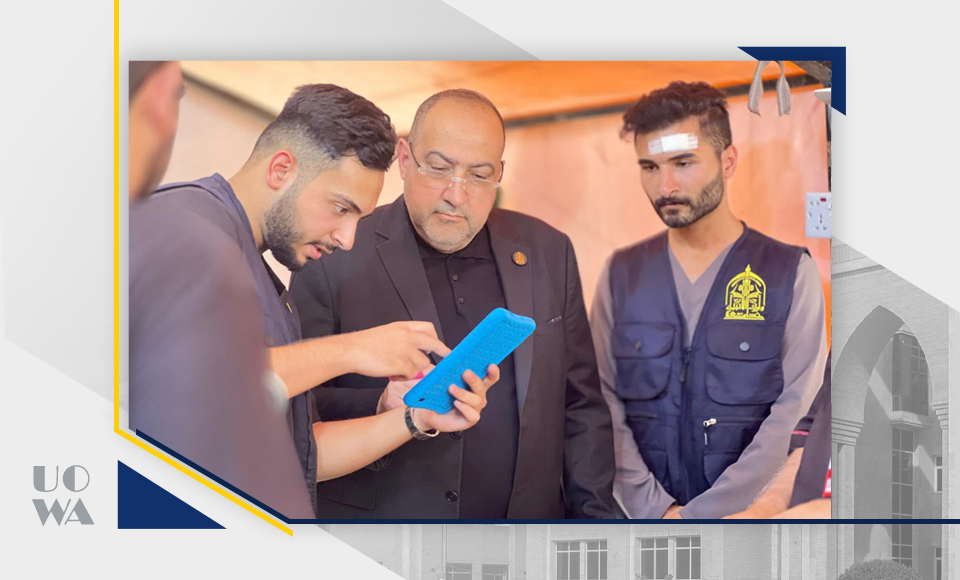 As part of the university's field monitoring of its efforts to serve Arbaeen pilgrims, the President of Warith al-Anbiya University (peace be upon him), Professor Ibrahim Saeed al-Hayawi, inspected one of the medical detachments run by students from the College of Medicine, in cooperation with the International Imamiyya Organization.
