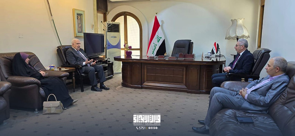 Professor Dr. Muhammad Hussein Al Yassin, the President of the Iraqi Scientific Academy, welcomed a delegation from the Deanship of the College of Islamic Sciences at the University of Warith Al-Anbiyaa, which was led by Assistant Professor Dr. Talal Faiq Al Kamali, the Dean of the College.
