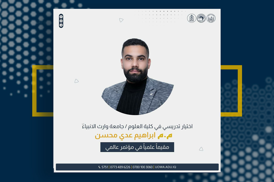 Assistant Lecturer Ibrahim Uday Al-Rubaie, teaching in the Information Technology Department at the College of Science, was chosen as a scientific assessor at the “Cyber Security and Resilience IEEE CSR 2024” conference, which will be held in the British capital, London.
